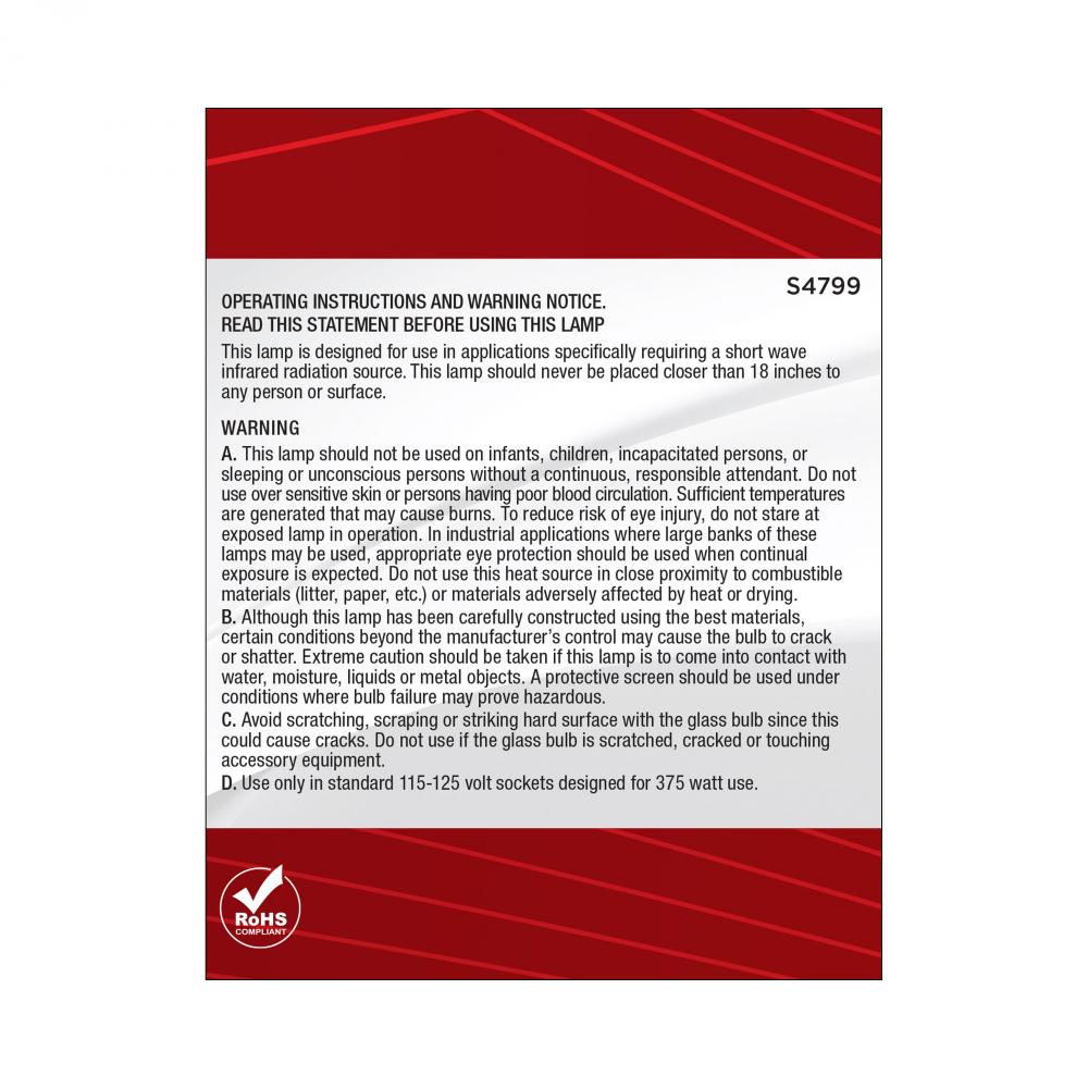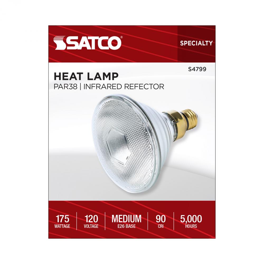 SATCO NUVO's S4799 incandescent heat lamp offers a reliable and versatile 175-watt heating solution, delivering focused warmth for various applications. Designed with a standard E26 medium base and operating at 120 volts, it emits a comforting glow ide
