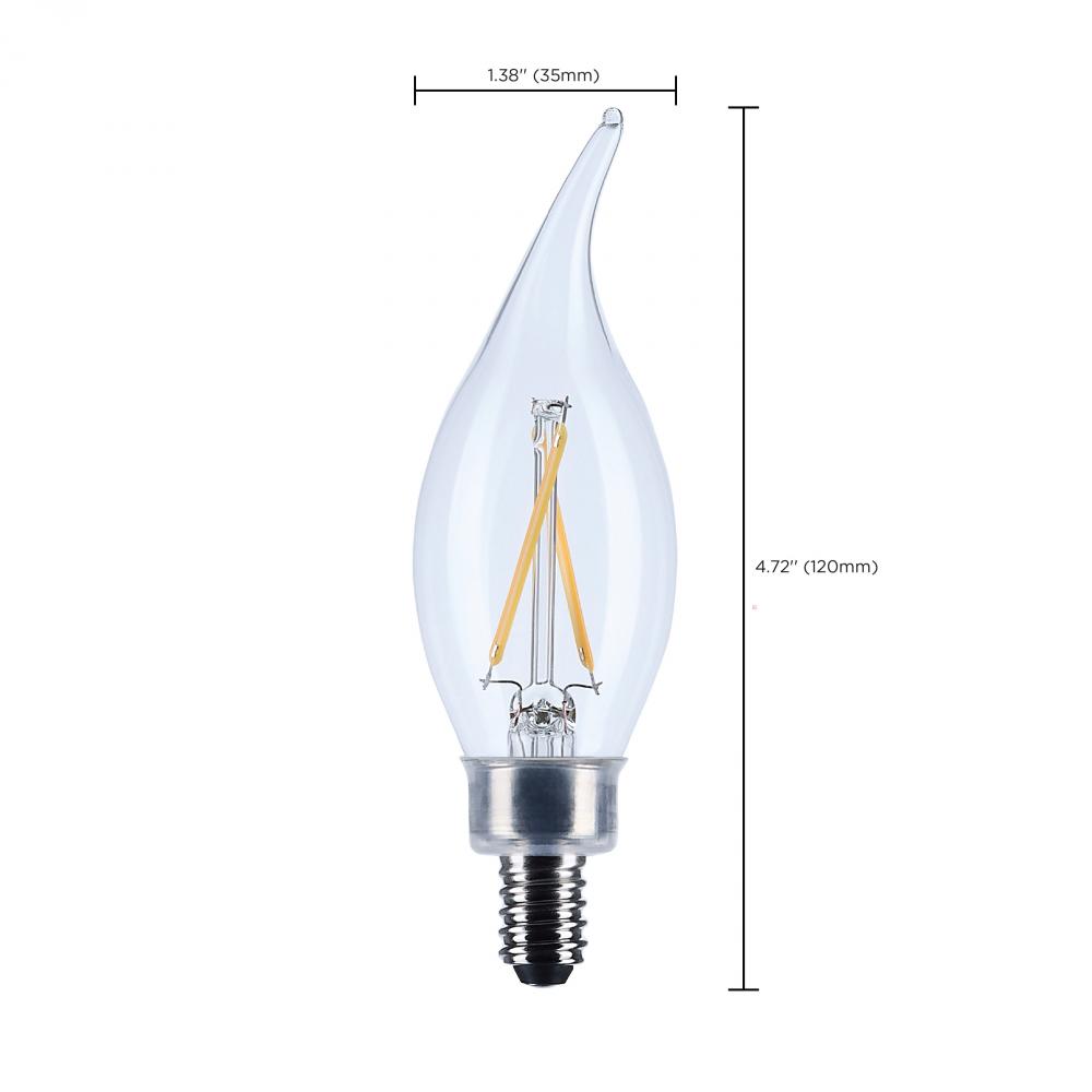 3 Watt CA10 LED; Candelabra Base; Clear; 3000K CCT; 120 Volt