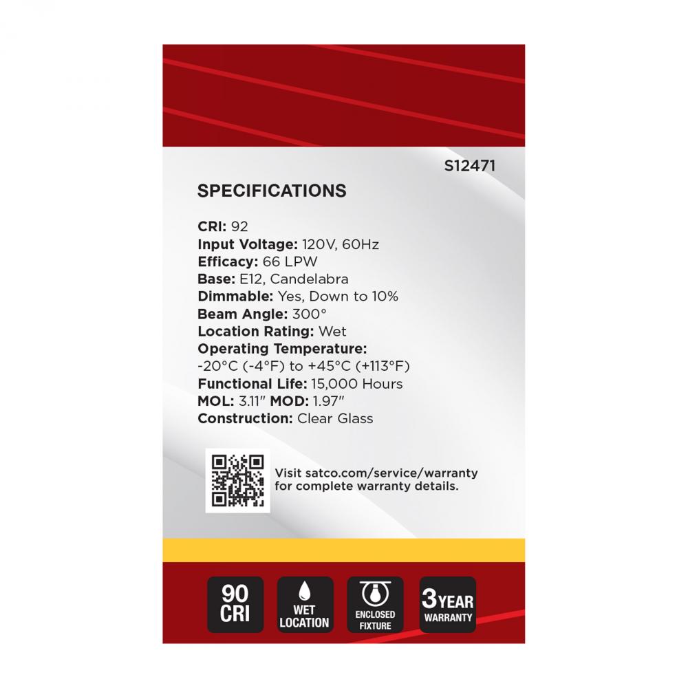 3 Watt G16.5 LED; Candelabra Base; Clear; 3000K CCT; 120 Volt