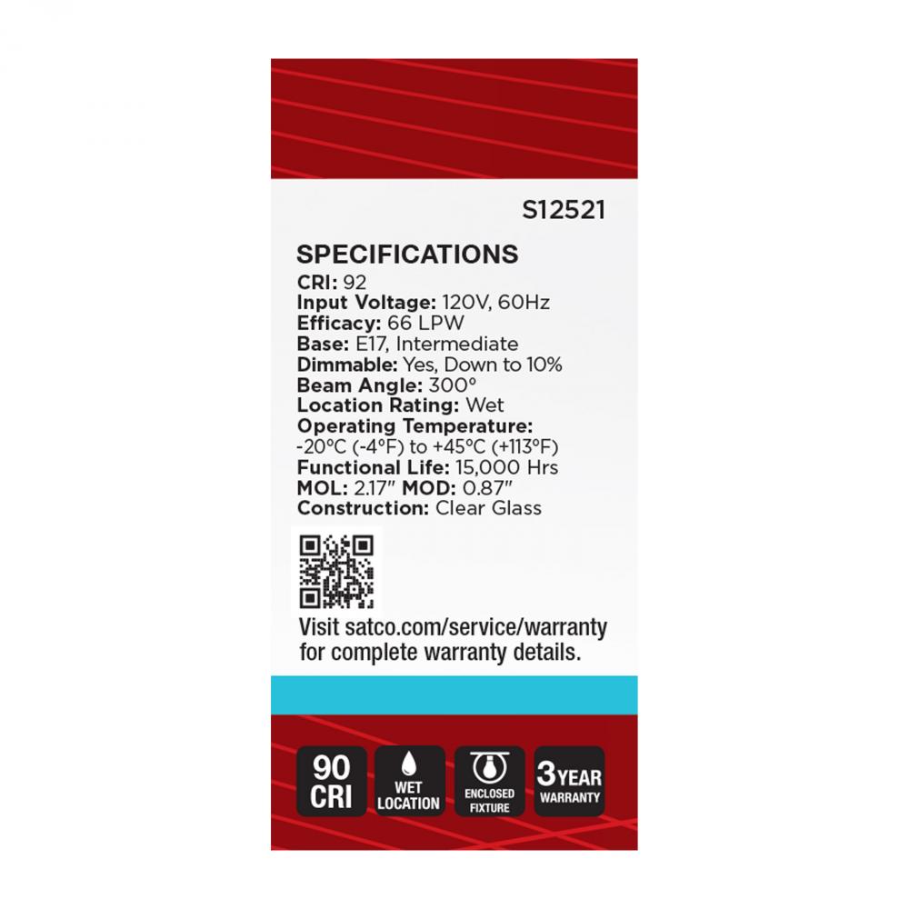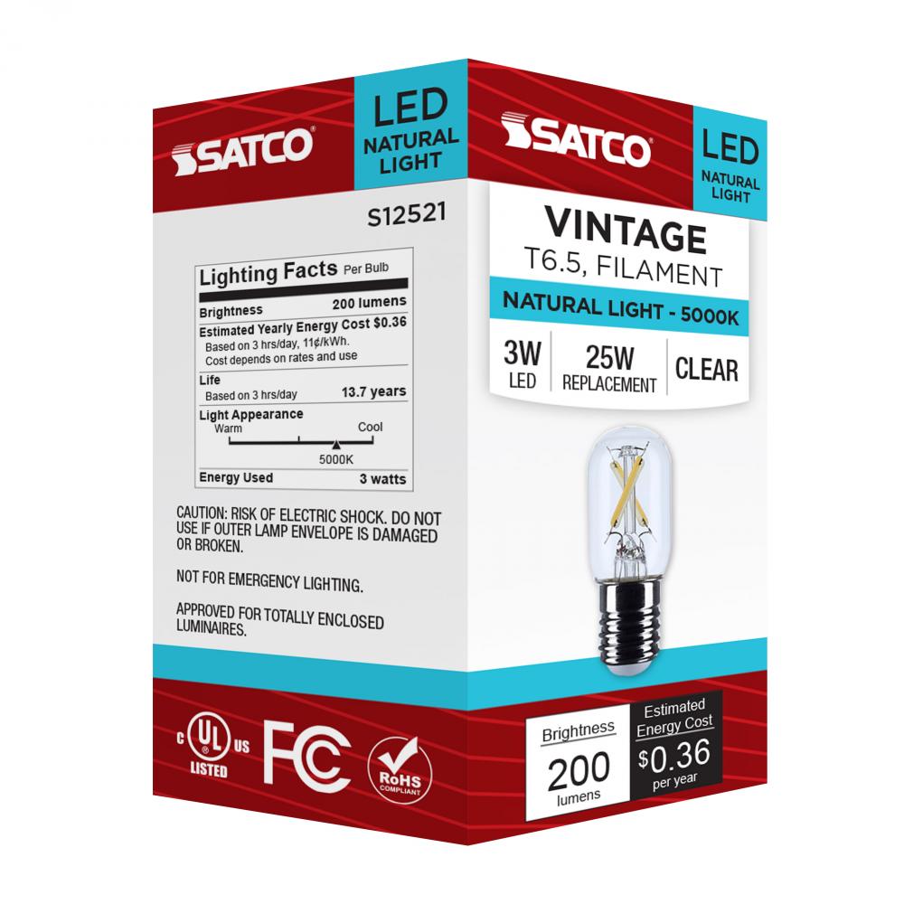 Satco's S12521 3-watt, LED lamp is traditional, yet contemporary with its vintage style and energy saving LED technology. Elegantly illuminate any room in the house with this dimmable, clear bulb. Sophisticated and modern, this lamp delivers 15,000 hou