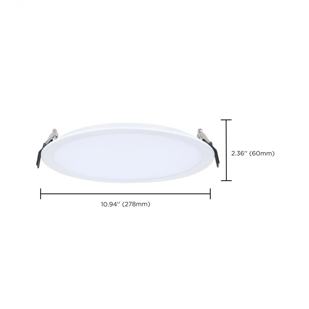 30 Watt; 10 Inch LED Direct Wire Downlight; Remote Driver; CCT Selectable; Dual Dimming; Flat Face; Round; White Finish