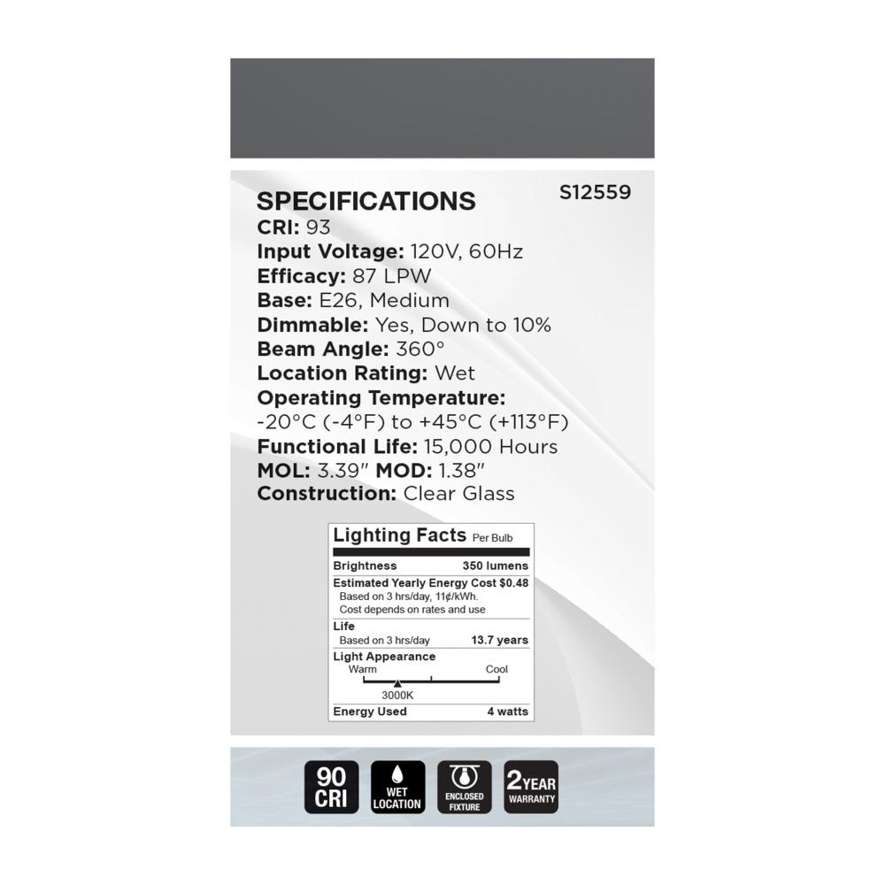 SATCO NUVO's S12559 Reminiscent lamps offer the traditional look of tungsten filament bulbs with the energy savings of LED technology. The gray filaments provide a clean aesthetic, blending in with many current fixture and decor trends. With brilliant,