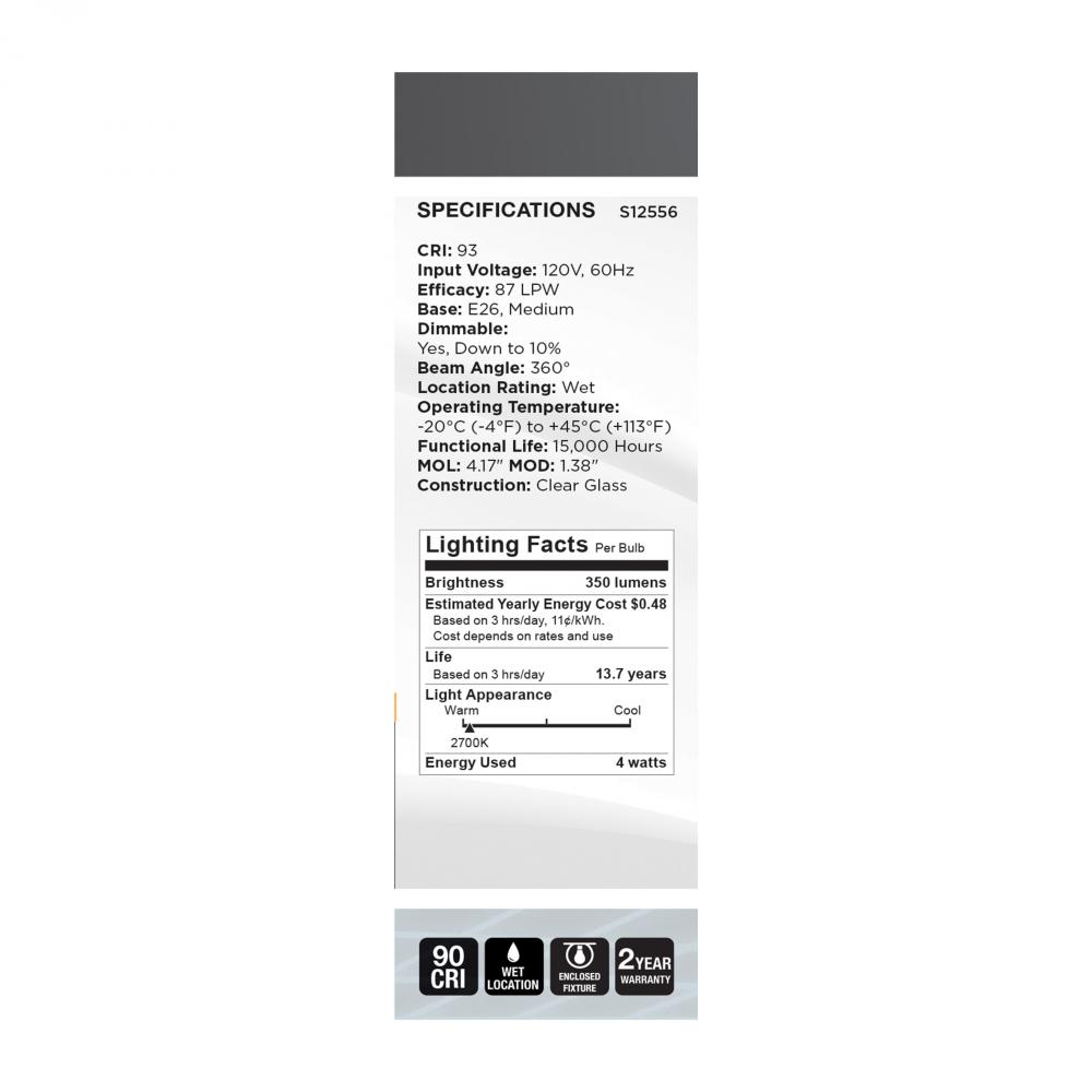 SATCO NUVO's S12556 Reminiscent lamps offer the traditional look of tungsten filament bulbs with the energy savings of LED technology. The gray filaments provide a clean aesthetic, blending in with many current fixture and decor trends. With brilliant,