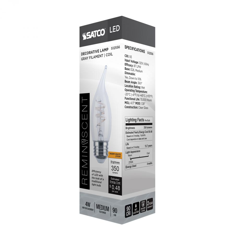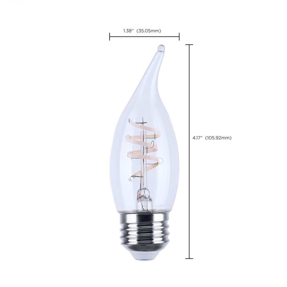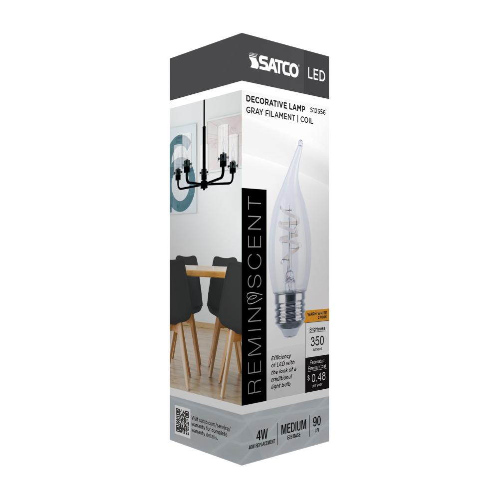 4 Watt CA11 LED; Reminiscent; Flex Gray Coil Filament; E26; 2700K; 120 Volt