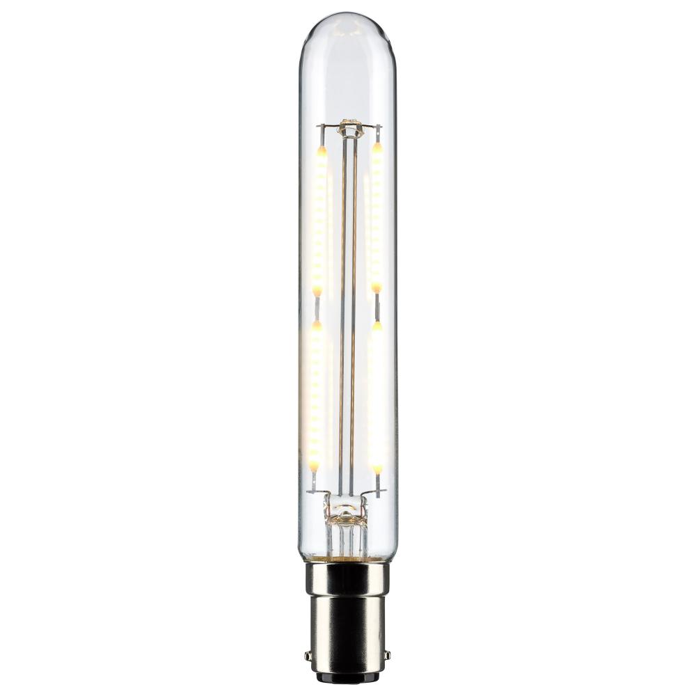 Satco's S21861 4-watt, T6.5 bulb with a bayonet double contact base is dimmable and offers soft white light with a 300 degree beam spread. Wet rated for use in kitchens and bathrooms, the carded packaging is suitable for retail display. Elegant and lon