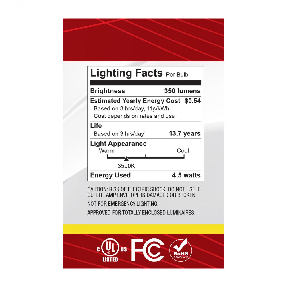 Satco's 4.5-watt LED lamp is traditional, yet contemporary with its vintage style and energy saving LED technology. Elegantly illuminate any room in the house with this dimmable, globe shaped bulb. Sophisticated and modern, this lamp delivers 15,000 ho