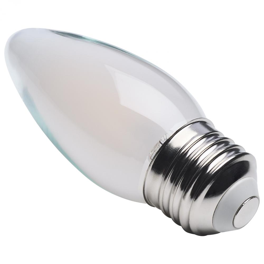 SATCO NUVO's S12160 B11 Dim to Warm filament bulb features a frosted finish for softly diffused light and a standard E26 base for easy installation. It dims smoothly from 3000K to 2000K, emulating incandescent warmth. With 360 degree light output, 90 C