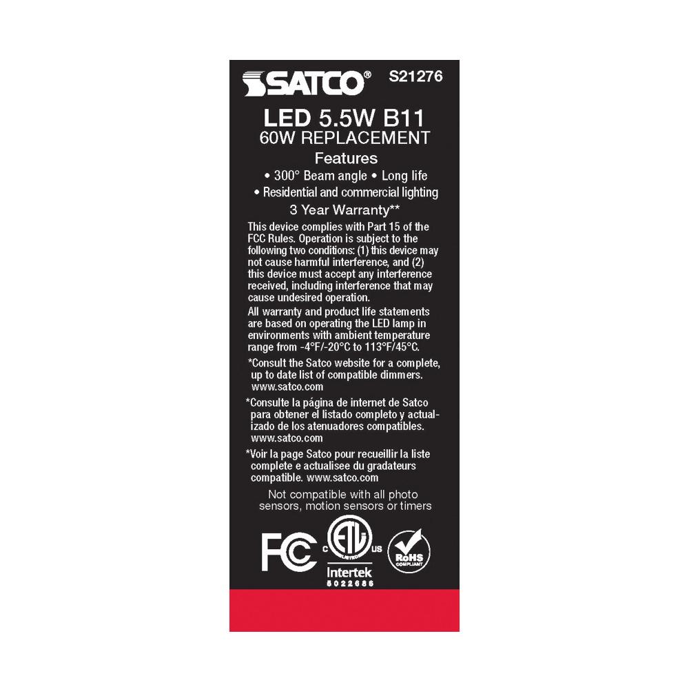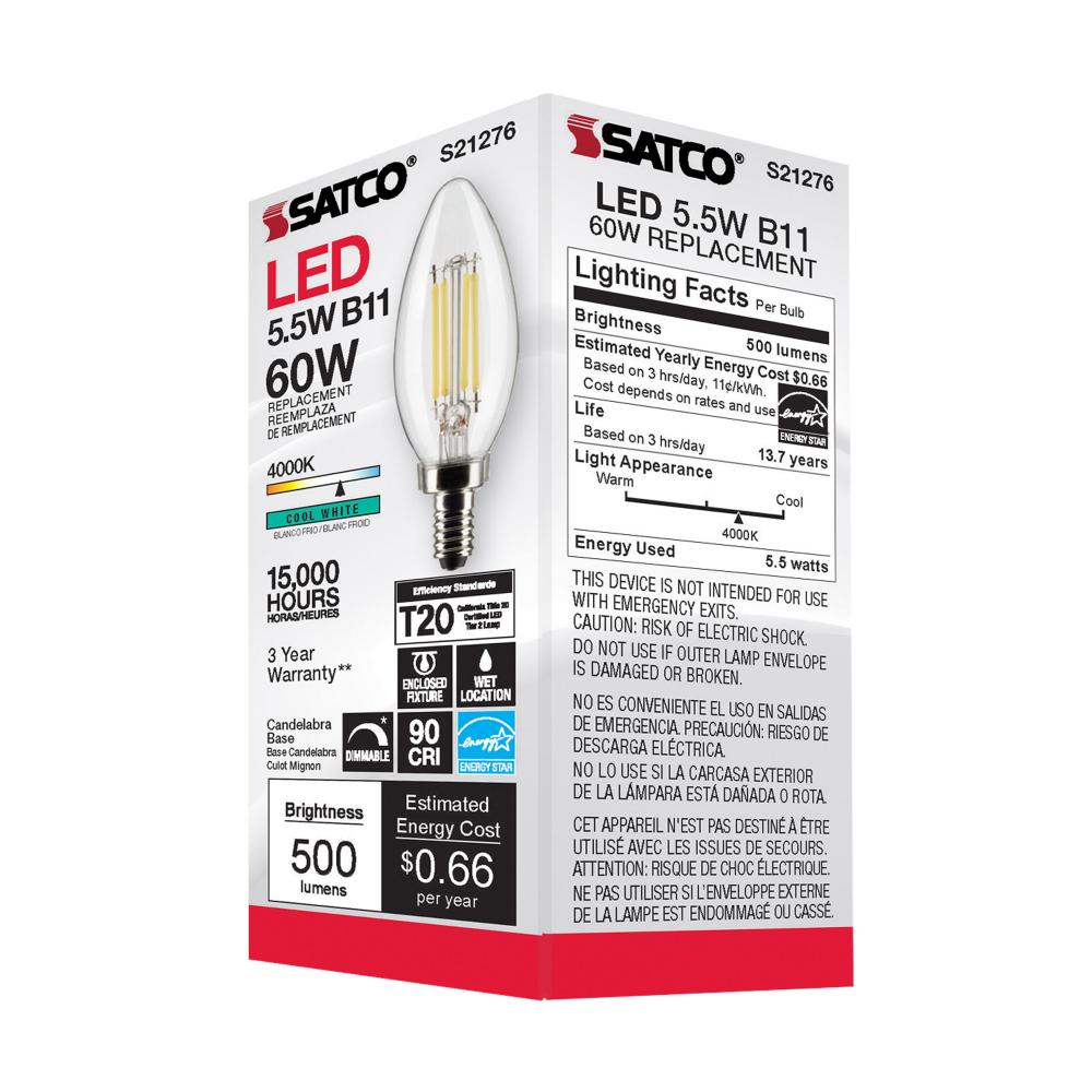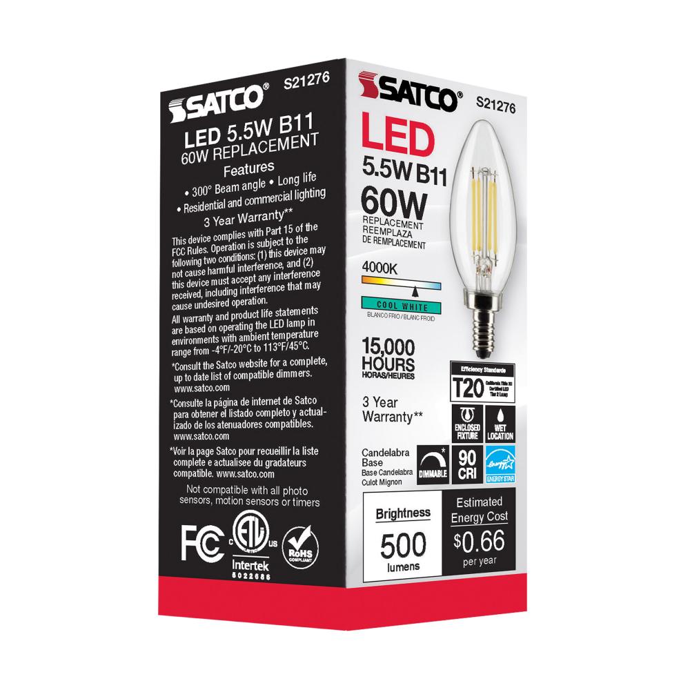 Satco's S21276 5.5 watt LED lamp is traditional, yet contemporary with its vintage style and energy saving LED technology. Elegantly illuminate any room in the house with this dimmable, clear bulb. Sophisticated and modern, this lamp delivers 15,000 ho
