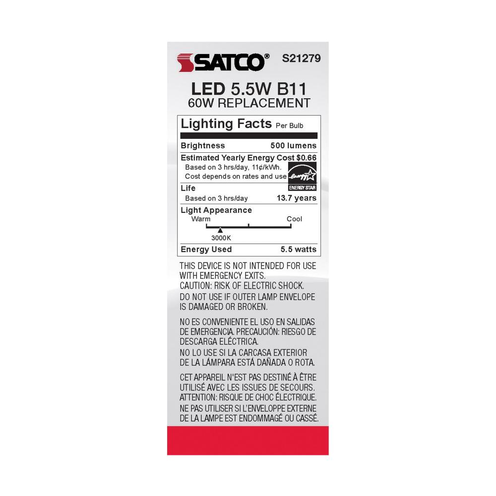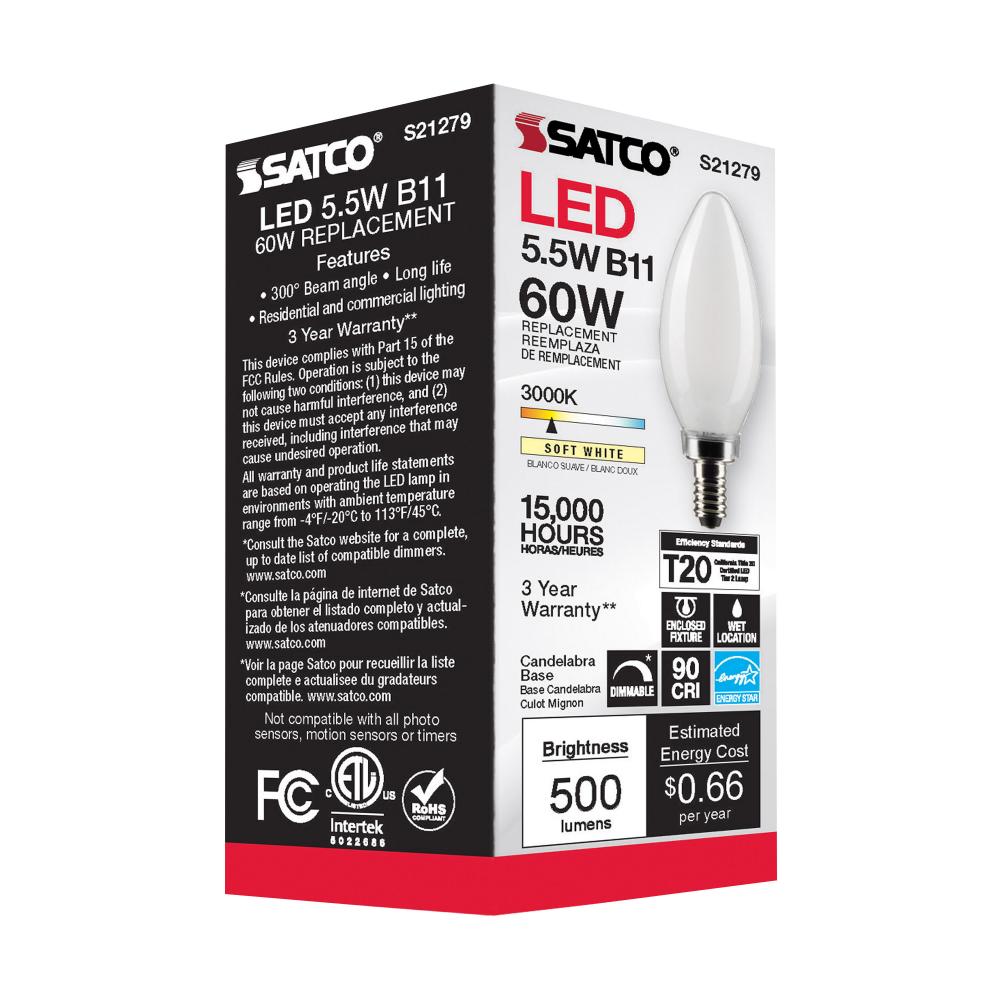Satco's S21279 5.5-watt LED lamp is traditional, yet contemporary with its sleek finish and energy saving LED technology. Elegantly illuminate any room in the house with this dimmable, frost finished bulb. Sophisticated and modern, this lamp delivers 1