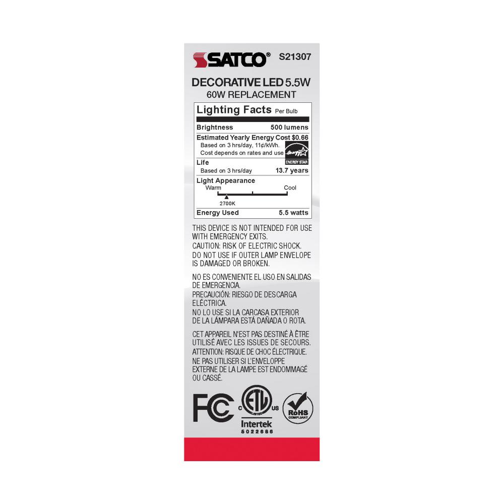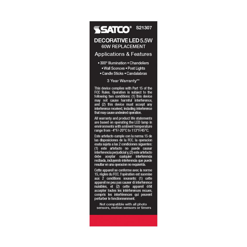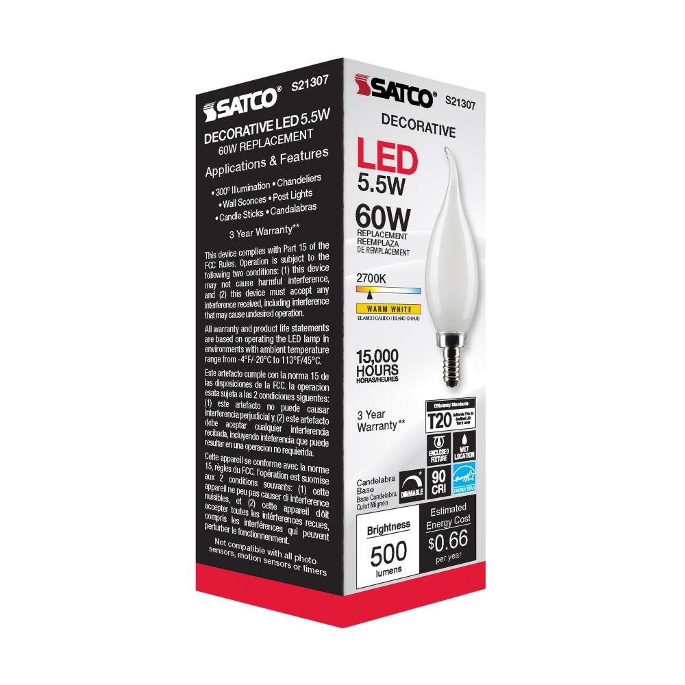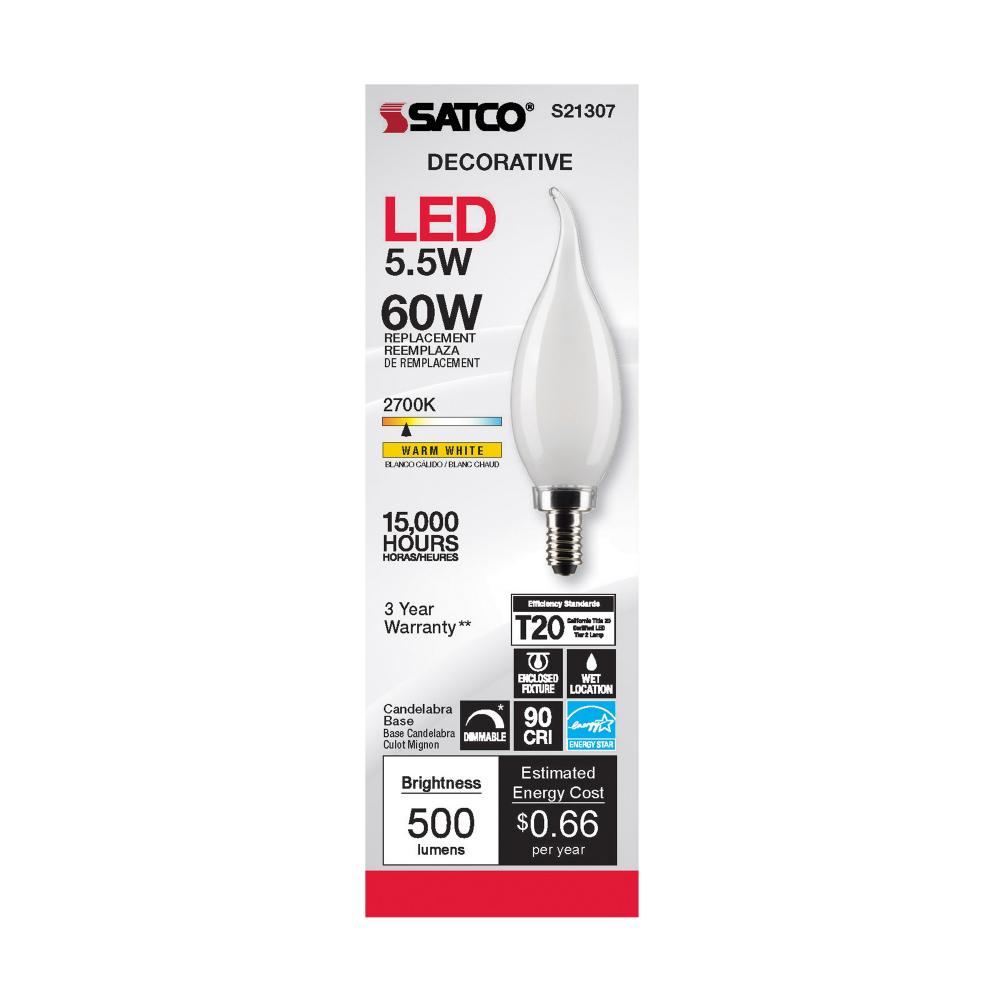 Satco's S21307 5.5-watt LED lamp is traditional, yet contemporary with its sleek finish and energy saving LED technology. Elegantly illuminate any room in the house with this dimmable, frost finished bulb. Sophisticated and modern, this lamp delivers 1