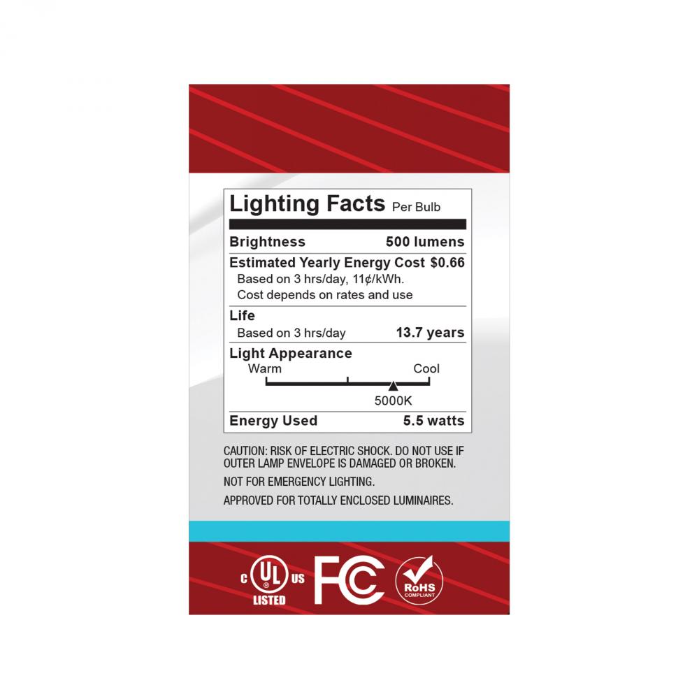 5.5 Watt G16.5 LED; Candelabra Base; Clear; 5000K CCT; 120 Volt