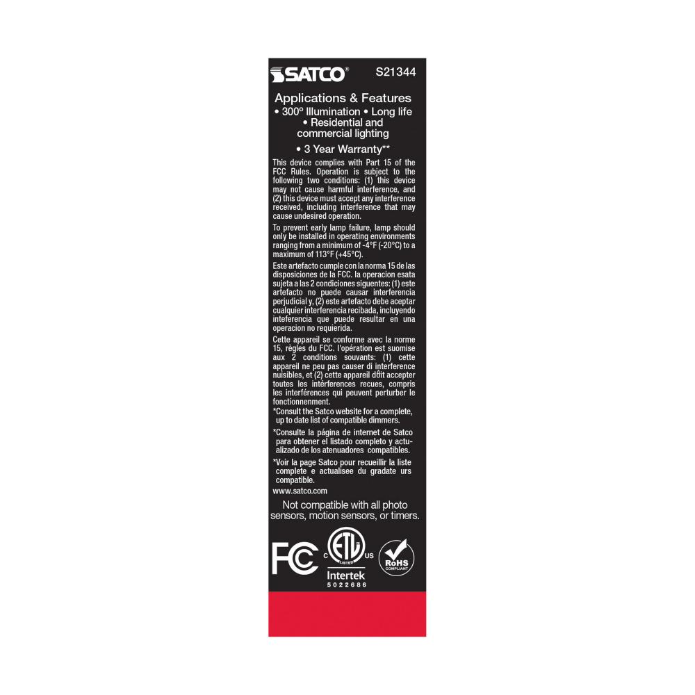 Satco's S21344 5.5-watt, LED lamp is traditional, yet contemporary with its vintage style and energy saving LED technology. Elegantly illuminate any room in the house with this dimmable, clear bulb. Sophisticated and modern, this lamp delivers 15,000 h