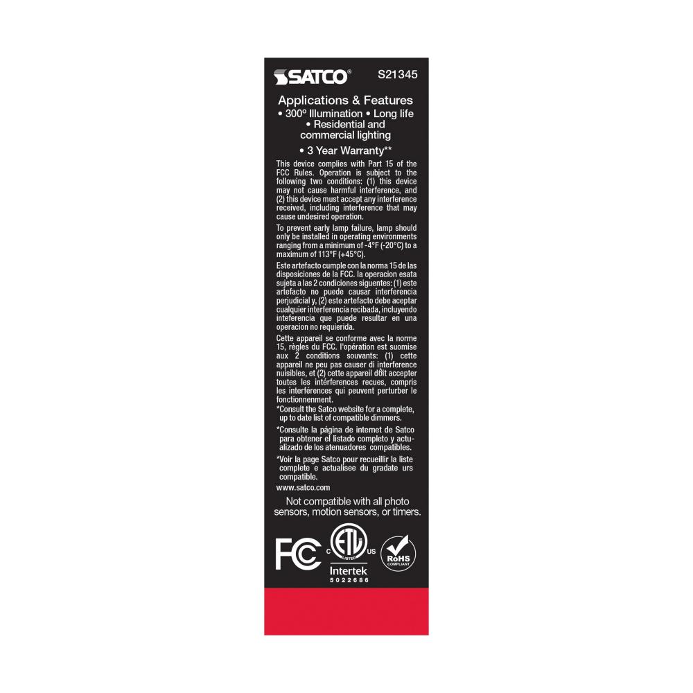 Satco's S21345 5.5-watt, LED lamp is traditional, yet contemporary with its vintage style and energy saving LED technology. Elegantly illuminate any room in the house with this dimmable, clear bulb. Sophisticated and modern, this lamp delivers 15,000 h