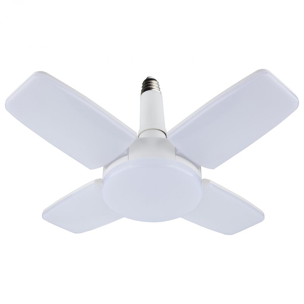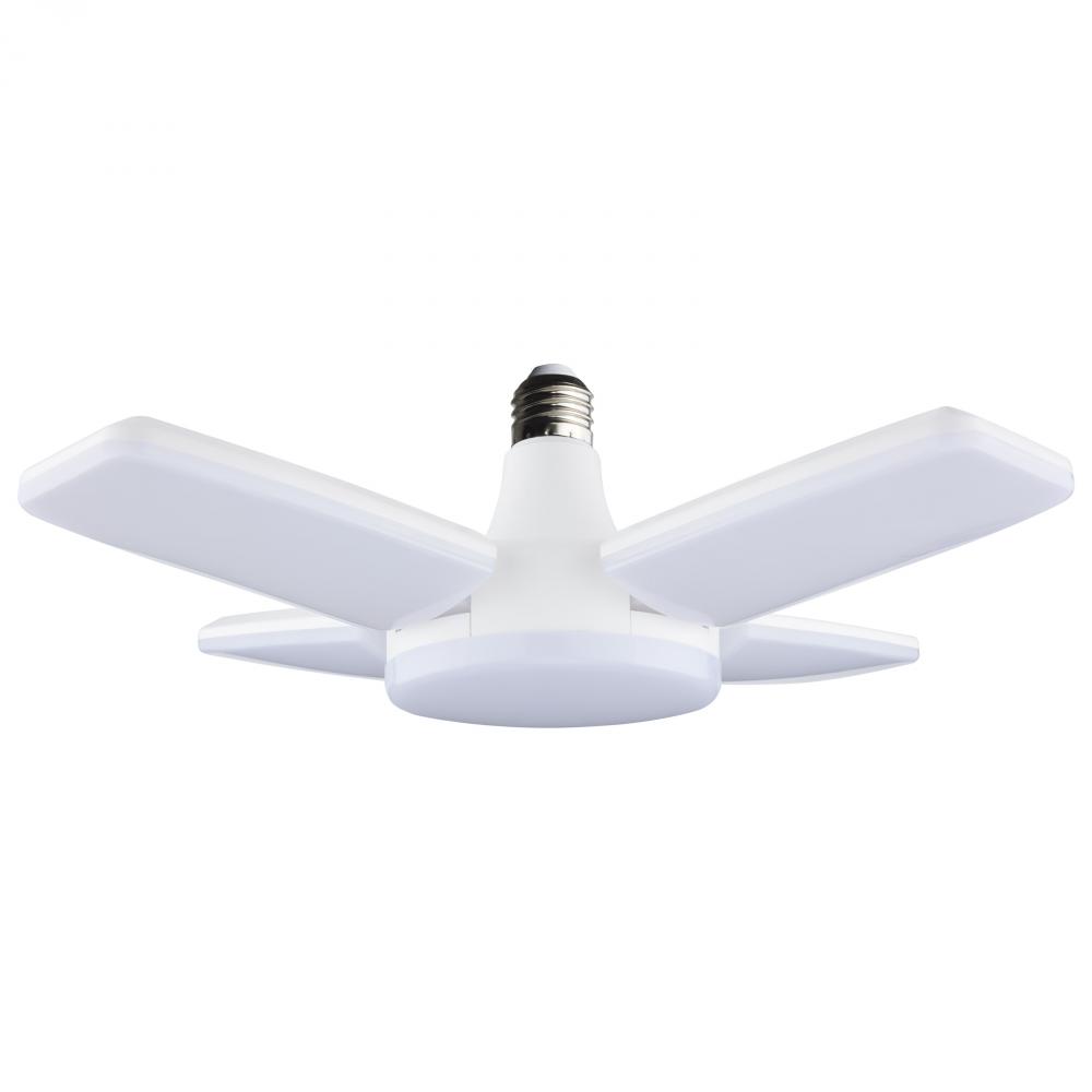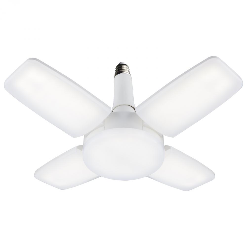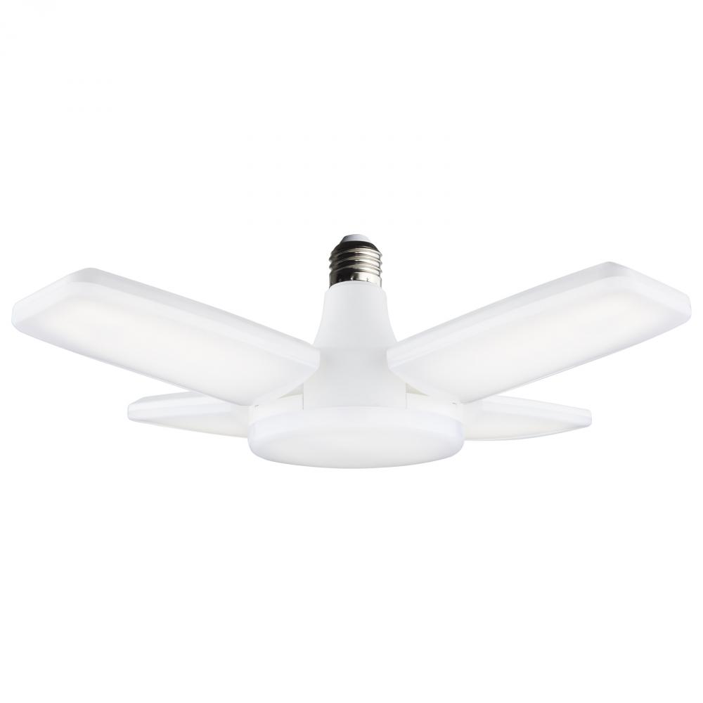 SATCO NUVO's LED Garage and Utility Light, S13147, easily provides ample illumination to garages, workshops, utility rooms and more. Simply screw the E26 base into any standard lamp socket and adjust the LED panels as desired from 300 degrees when clos