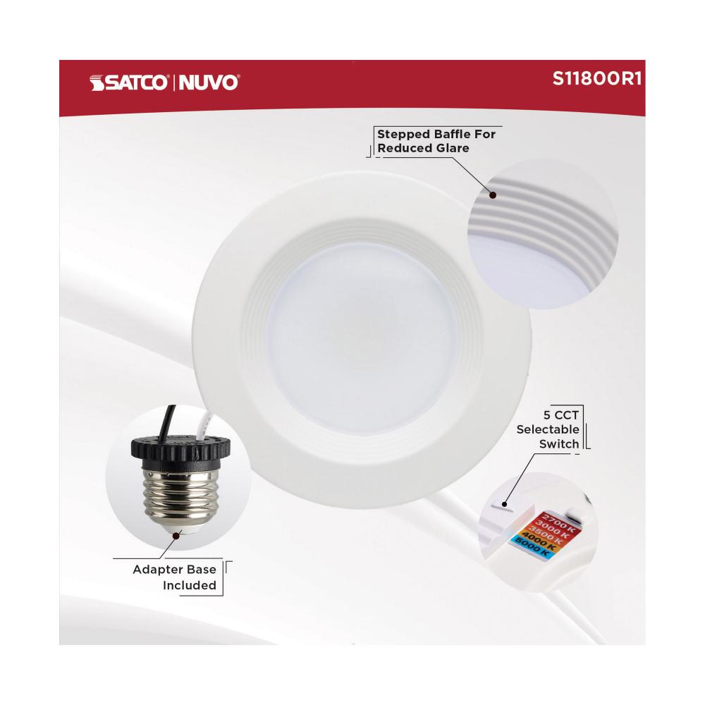 SATCO NUVO's S11800R1 LED Retrofit Downlight is the easy way to convert traditional recessed lighting to LED. This 4-inch round fixture is sized for, and comes ready with, an E26 base adapter for instant illumination when installed with existing cans.
