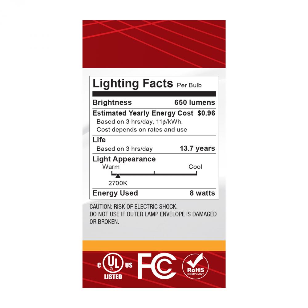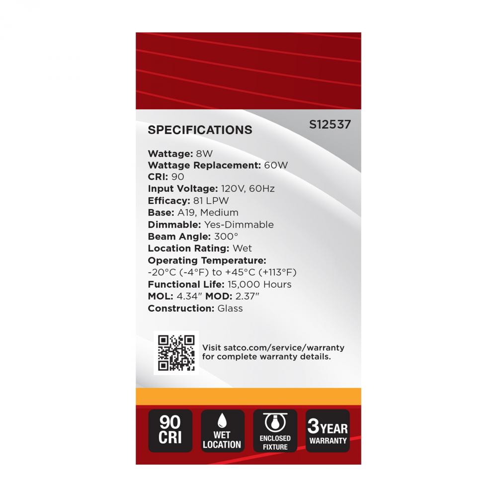 8 Watt A19 LED; Medium Base; 2700K CCT; Silver Crown; 60 Watt Replacement