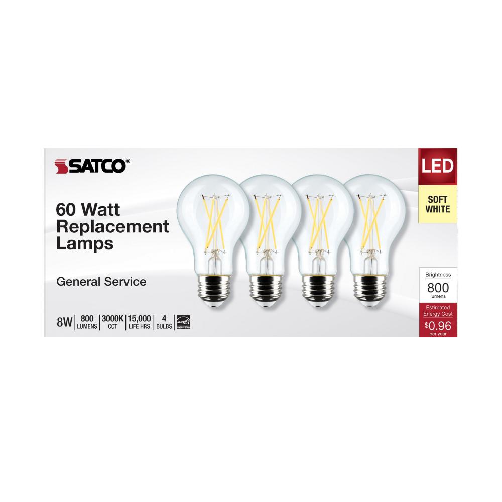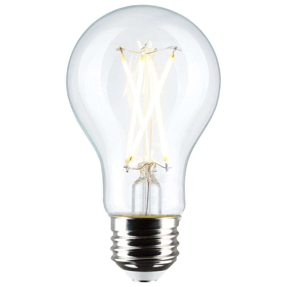 Satco's 8-watt A19 clear bulb is dimmable and offers soft white light and a 280 degree beam spread. Wet rated for kitchens and bathrooms. Features a medium base that fits all standard lamps and fixtures, and provides superior lighting. Elegant and long