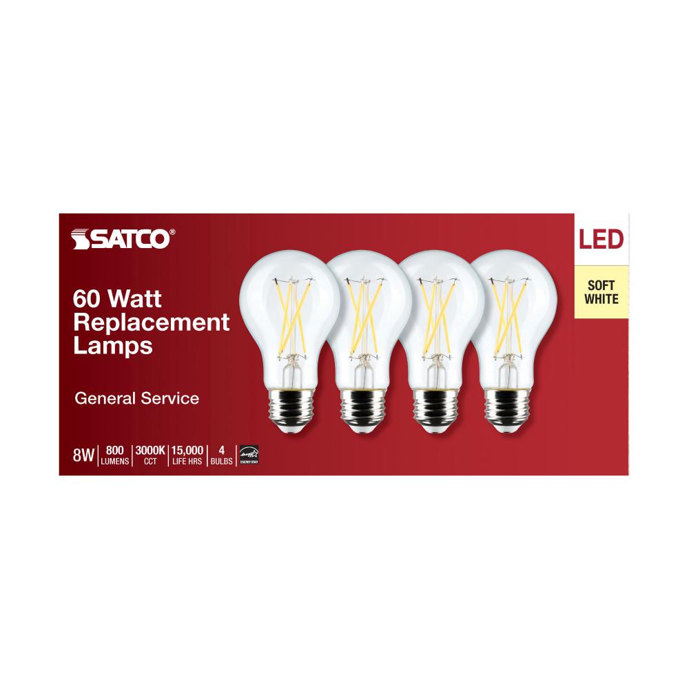 8 Watt A19 LED Filament; Clear; 3000K; Medium Base; 120 Volt; 4-Pack