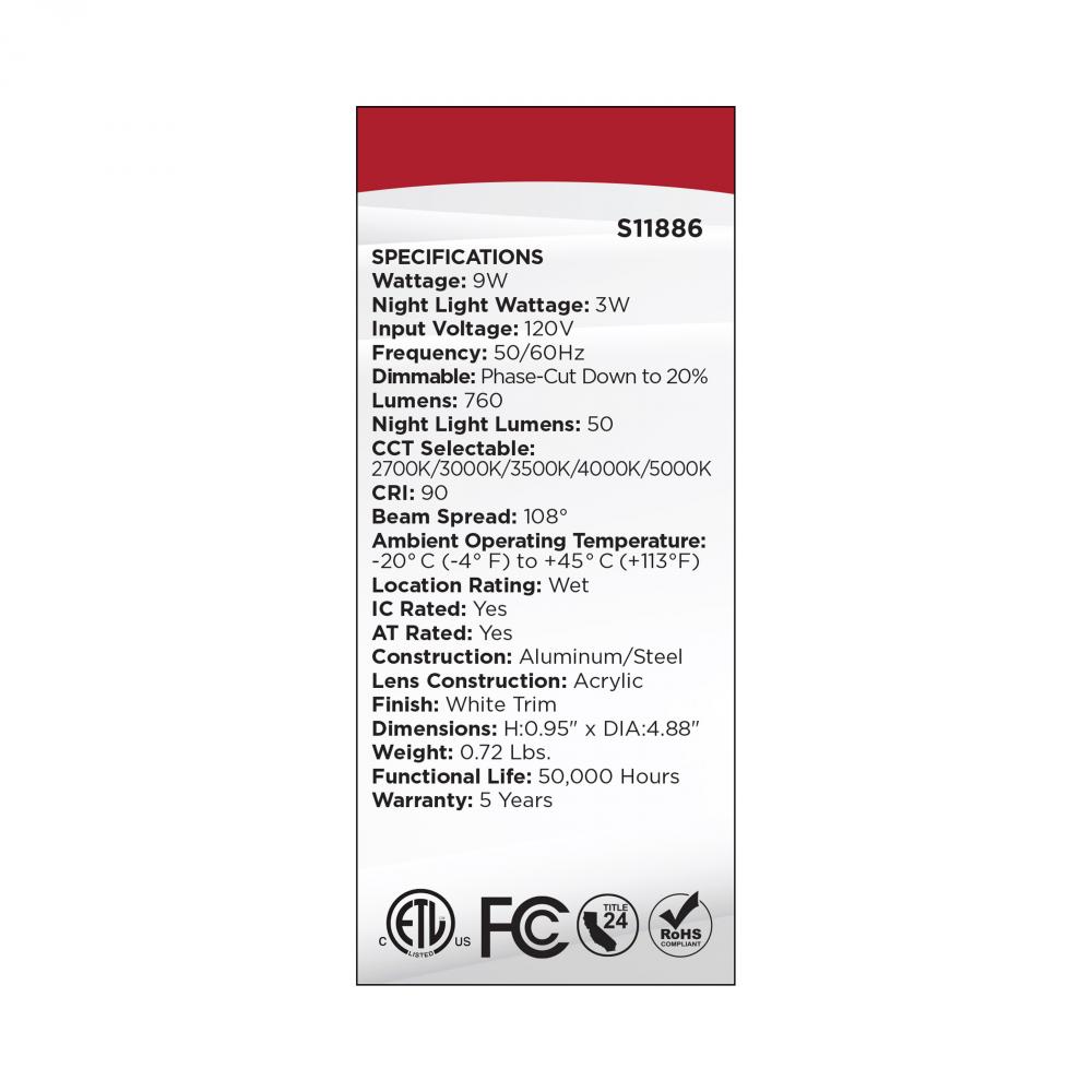 SATCO NUVO's LED Downlights with Integrated Night Light provide a classic downlight with night light for additional ambiance control. Choose from five warm to cool CCTs at installation, connect an optional dimmer, or switch on-off-on at the wall plate