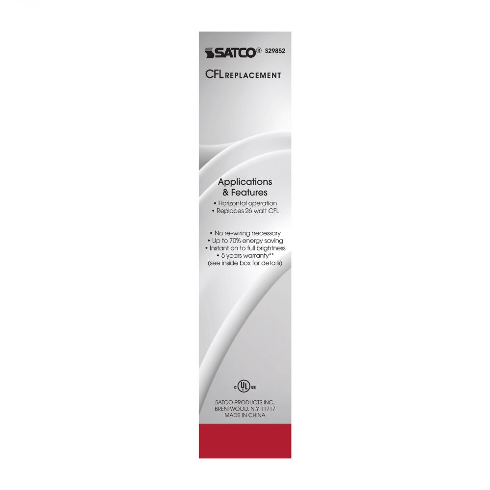 9 Watt LED PL 4-Pin; 4000K; 1100 Lumens; G24q base; 50000 Average rated hours; 120 Deg. Beam Angle;