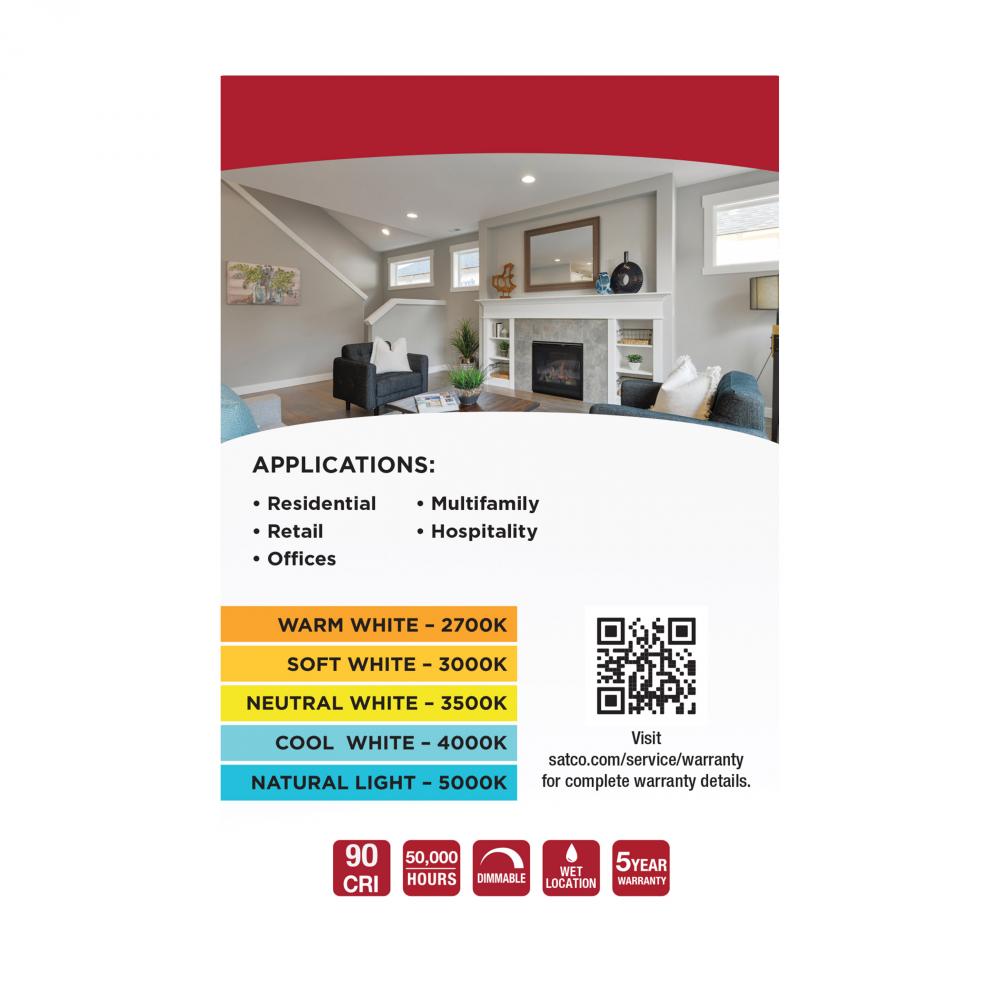 SATCO NUVO's LED Field Selectable Deep Baffle Retrofit Downlights are designed with the look of sophistication in mind. The deep stepped baffle crafted on these downlights drastically reduces glare and with a high CRI rating of 90, users can enjoy enha
