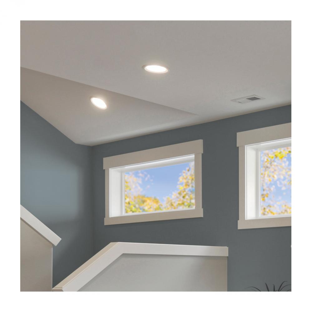 SATCO NUVO's S11883 5/6-inch round field selectable deep baffle retrofit downlight is designed with the look of sophistication in mind. The deep stepped baffle crafted on this downlight drastically reduces glare and with a high CRI rating of 90, users