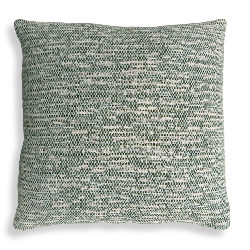 An Intricately Woven Basketweave In Tones Of Juniper, Sea Salt, And White In Sunbrella Solution Dyed Acrylic. Complete With An Invisible Zipper And Filled With A Plush, Microdenier Polyester Inside A Water-resistant Casing. Made In The USA.