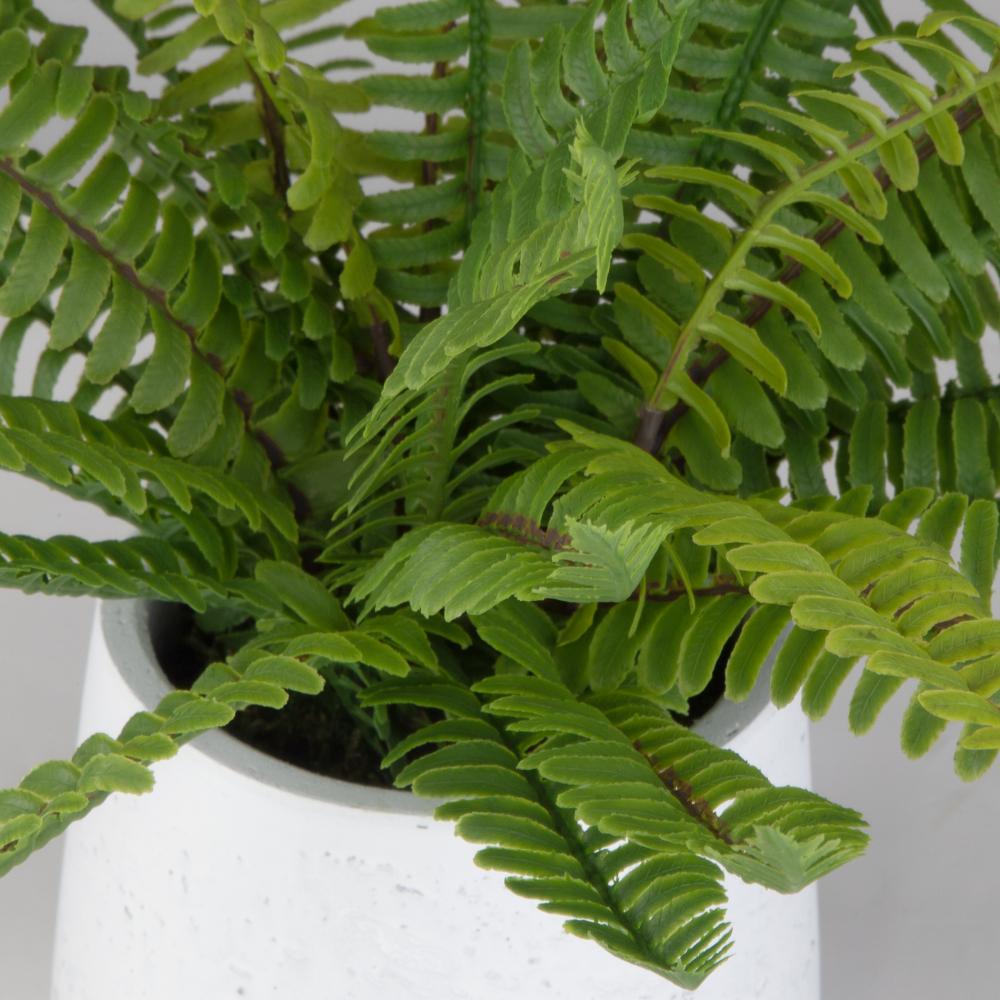 Adding A Structured And Textural Accent, The Boston Fern Displays Variegated Tones Of Green Contrasting With Its Sleek White Textured Ceramic Pot.