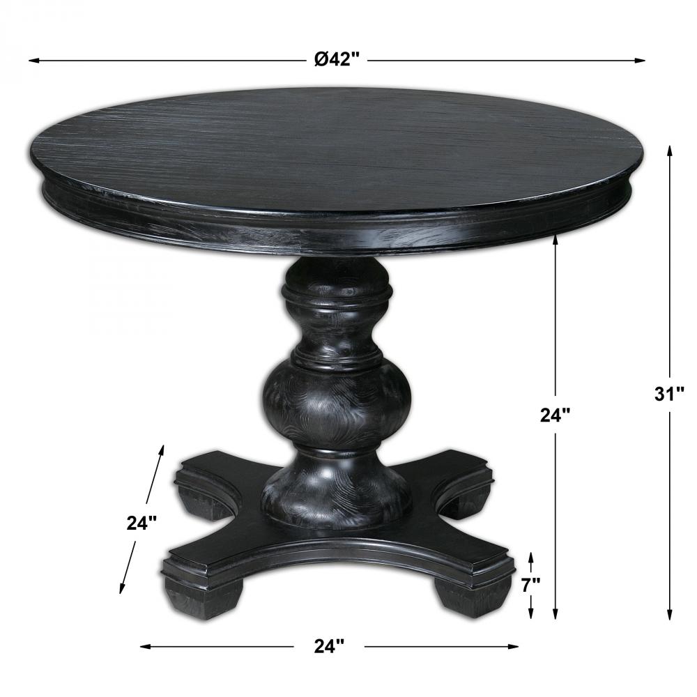 An Elegant Entryway Table or Small Dining Table, Featuring Detailed Moldings and A Stylish Turned Baluster in A Satin Black Finish with Subtle Pine Wood Grain.