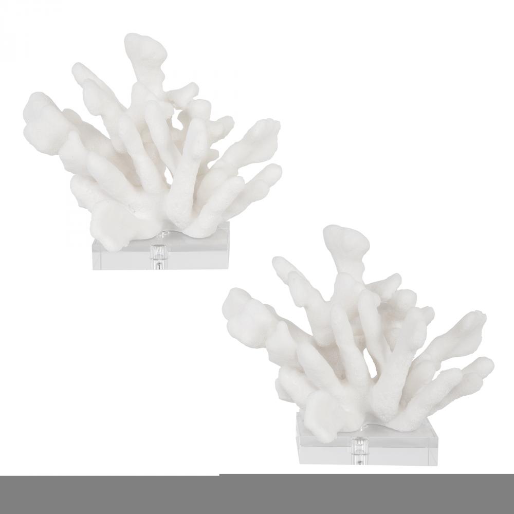 Set of Two Bookends Featuring Textured Faux White Coral on Crystal Bases. Sizes: S-5x9x8, L-6x9x8