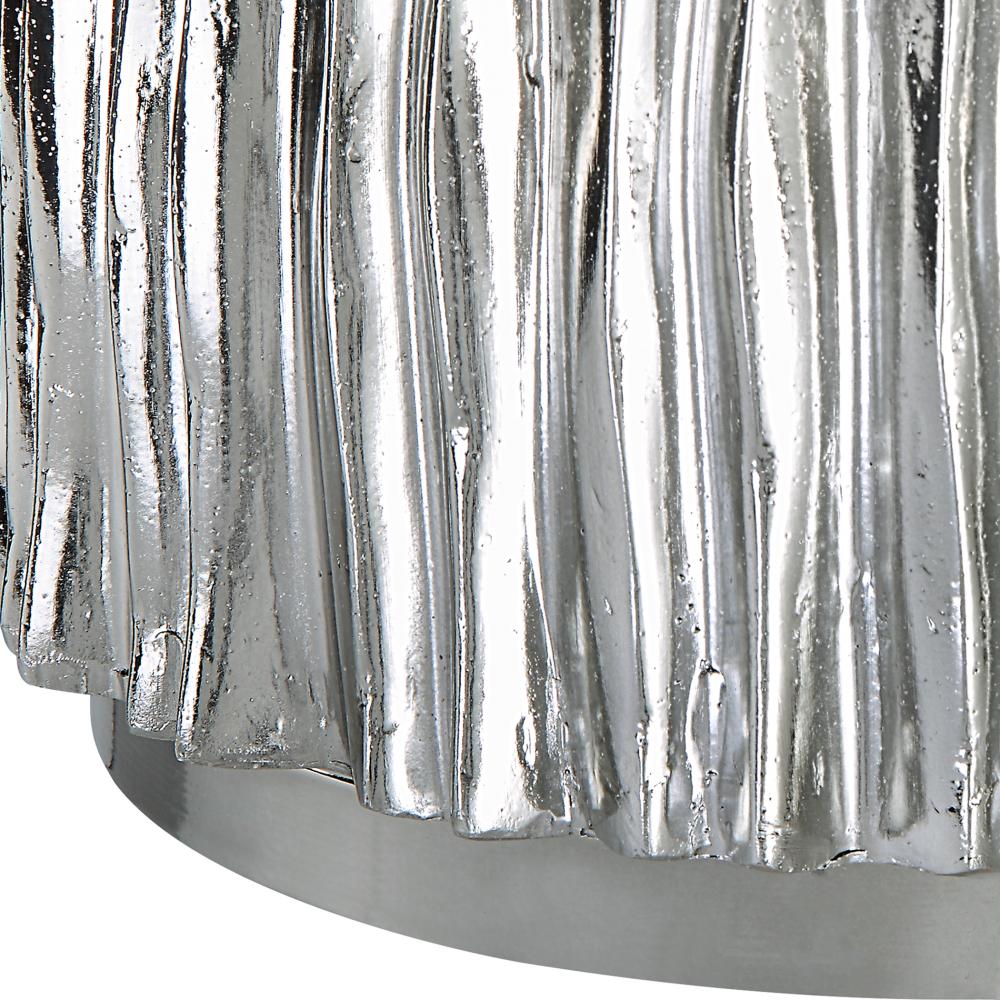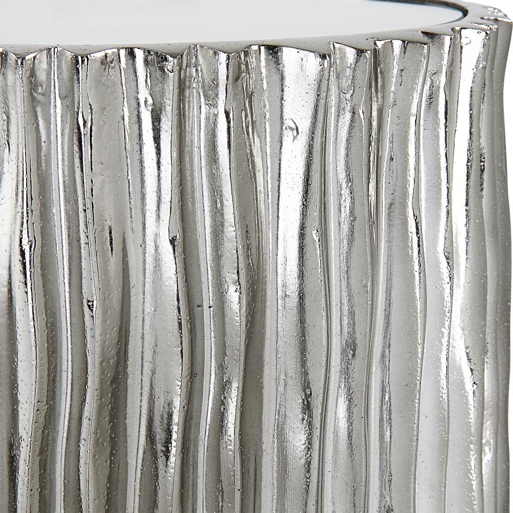 Waterfall Textures Make A Dramatic Statement in This Petite Drink Table. Finished in Polished Dark Nickel with A Mirrored Top.