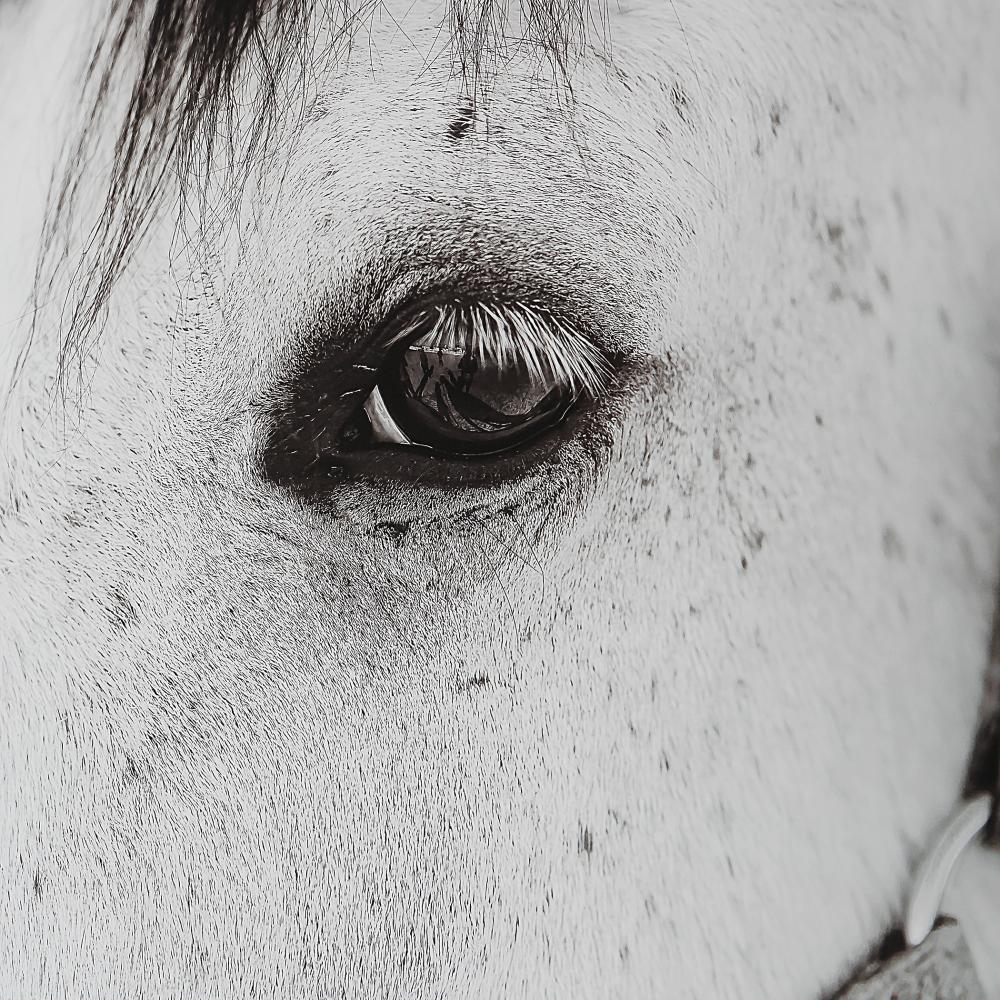 Ralph Waldo Emerson Once Said, "the Eyes Indicate The Antiquity of The Soul." As One Part of A Striking Equine Story, This Artwork Showcases An Exclusive Black and White Portrait with Layered White Matting Under Glass and A Simple Satin Black Frame.