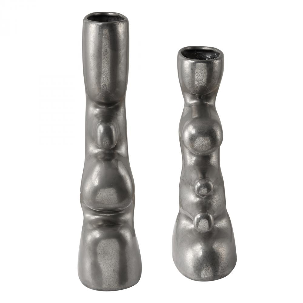 Set Of Two Ceramic Vases Embrace The Iconic Look Of Modern Décor. These Decorative Vases Feature A Free Flowing, Carefree Design Finished In A Tarnished Nickel Glaze. Suitable For Placement In Most Any Room, These Can Simply Be Displayed Alone Or Add Some Florals For A Touch More. Sizes- S- 8x12x4, L- 7x14x4