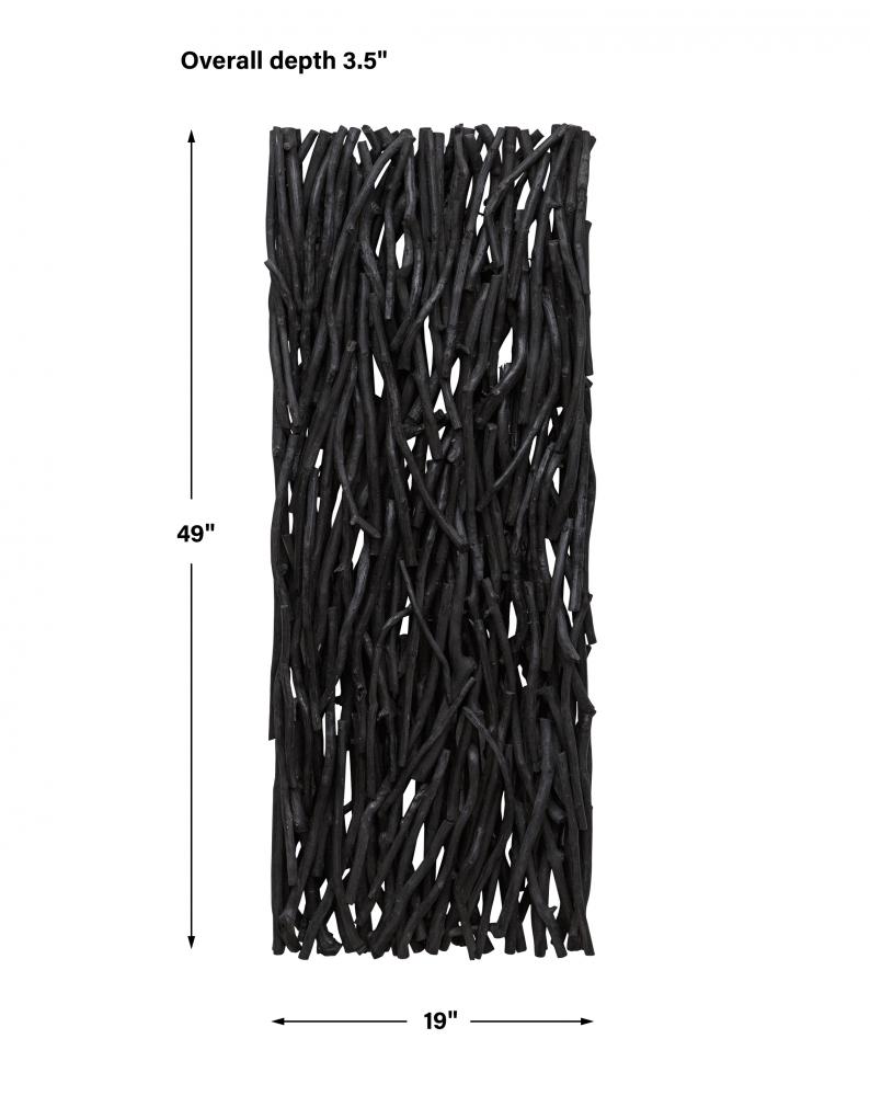 This Oversized Wood Wall Panel is Artfully Created From Teak Branches in A Contemporary Black Finish. May Be Hung Horizontal or Vertical.