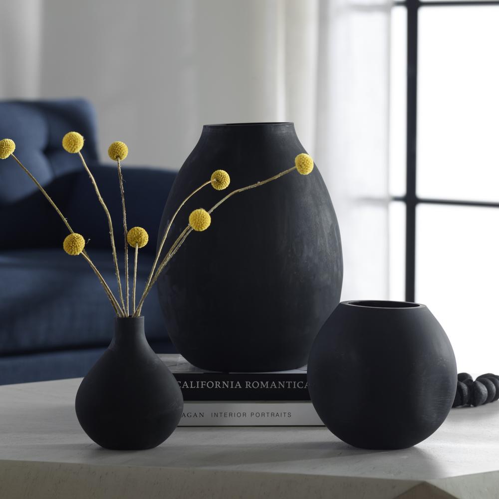 Cozy Additions to Any Space, The Hearth Vases Are Crafted From Black Glass with A Matte Finish. Sizes: S-5x6x5, M-7x7x7, L-9x12x9