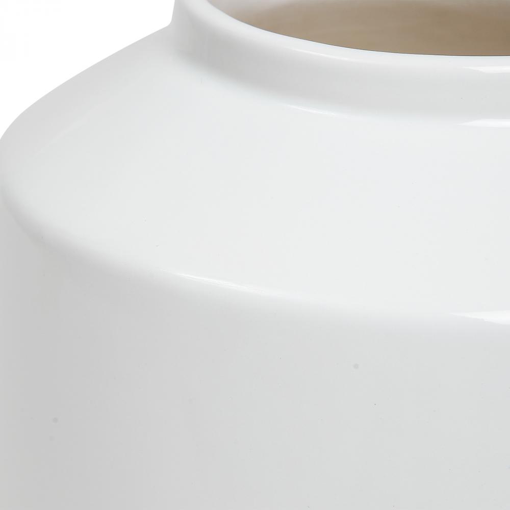 Set of Two Ceramic Vessels Are Finished in A Stunning Gloss White Glaze. The Varying Vase Heights Create Their Own Beautiful Display or Can Be Used to House Floral Stems. Sizes: S- 8x8x8, L- 5x10x5