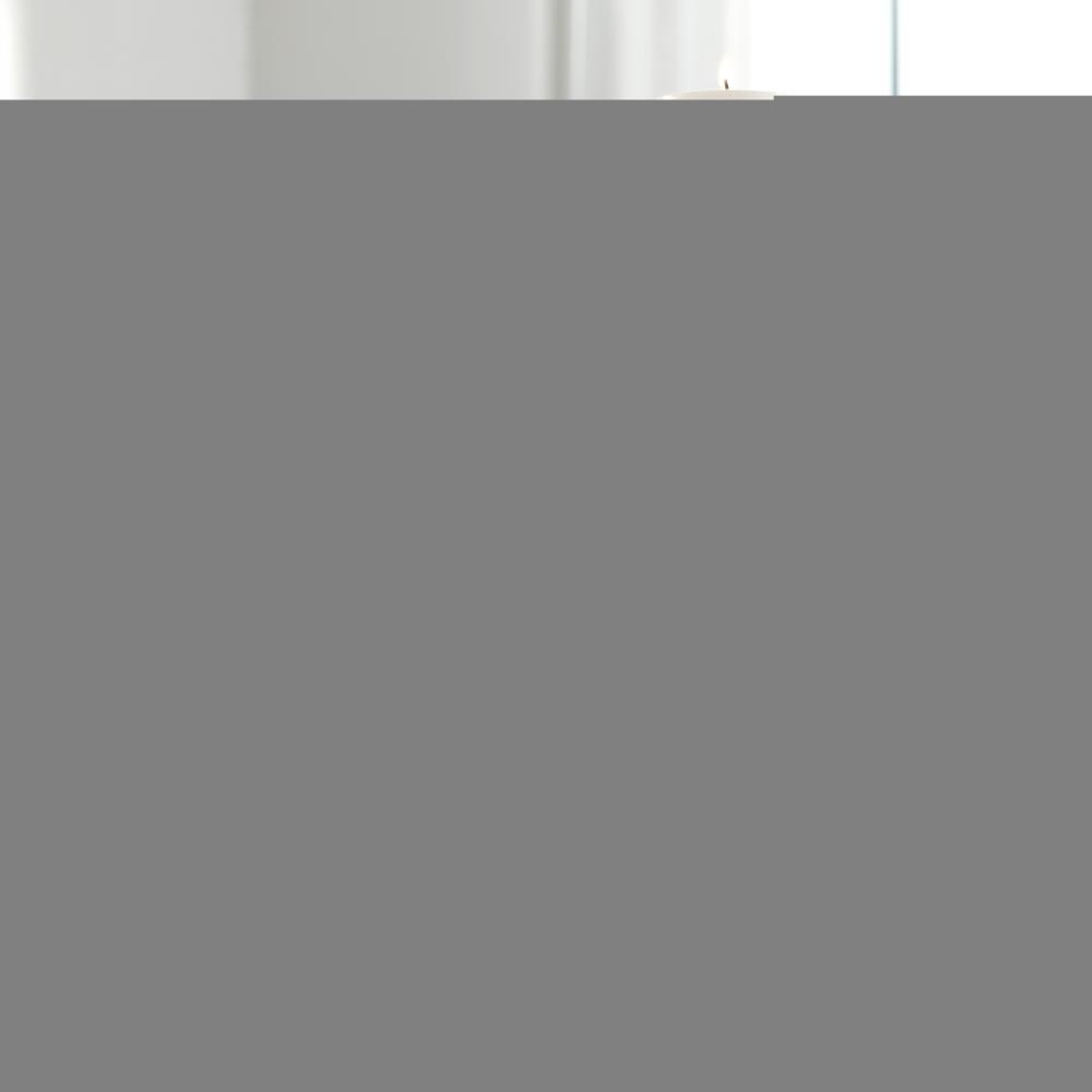 Sculptural Candle Holders Crafted From Ivory Man-made Stone That Accurately Replicates The Look of Thassos Marble and is Accented By An Elegant Crystal Foot. Includes Two, 3x3 Distressed White Candles. Sizes: S-5x12x5, L-5x16x5