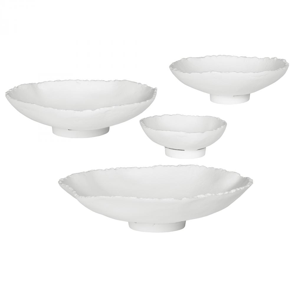 Handcrafted From Aluminum, These Metal Wall Bowls Feature Noticeable Textural Elements with Organic Edge Details and Are Finished in Matte White. May Be Hung on A Wall with Keyhole Hangers, or Displayed As Tabletop Accessories. Sizes: Sm-5x5x1, Med-7x7x2, Lg-9x9x2, XL-11x11x3