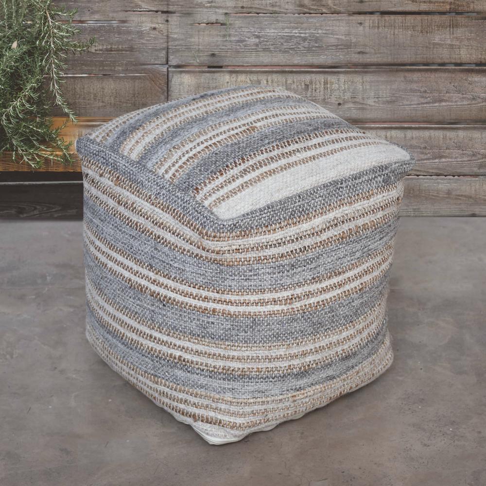 Handwoven Fabric in Light Gray, Cream, and Natural Tones That Create Extra Durability. Has Versatile Use As An Ottoman, Extra Seating for Guests, or Even An Accent Table When Topped with A Decorative Tray.