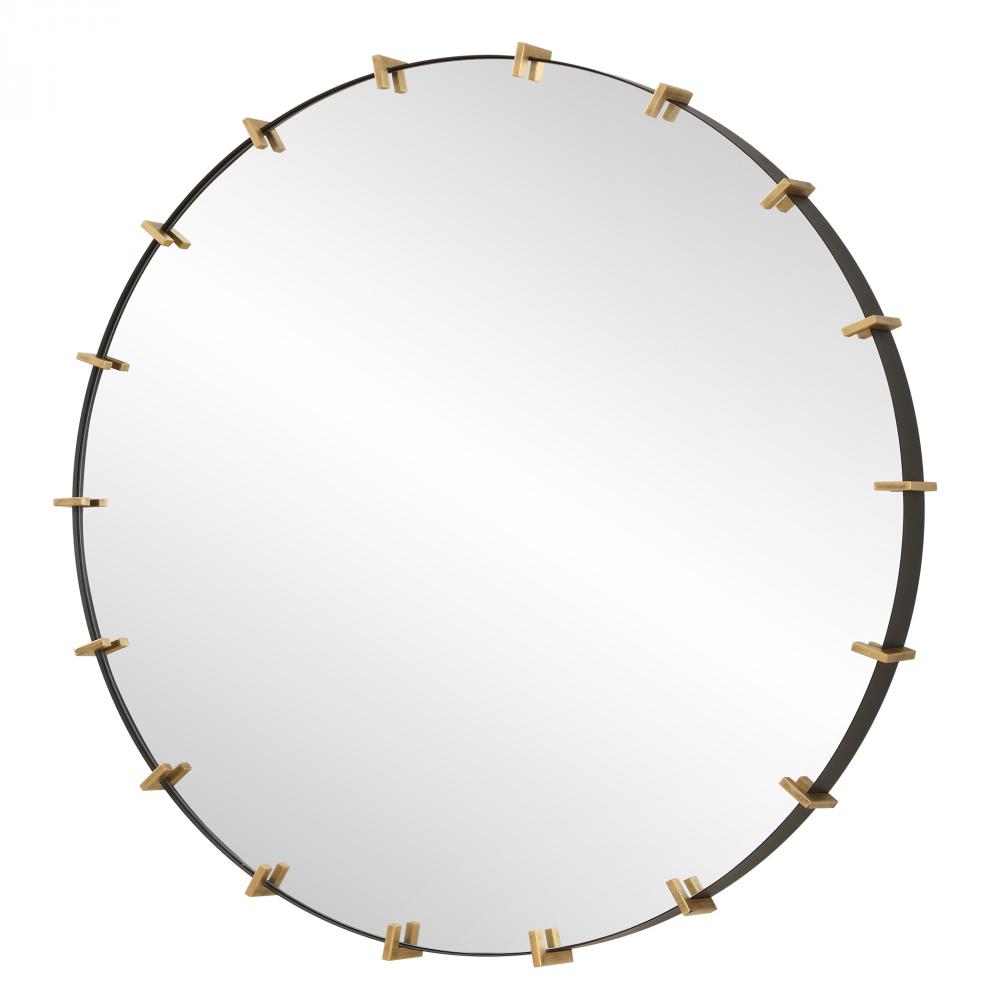 The Pali Round Mirror Successfully Pairs Contemporary And Industrial Styles With A Black Iron Strap Frame Accented By Lightly Antiqued Brushed Gold Details, Surrounding A Floating Polished Edge Mirror.