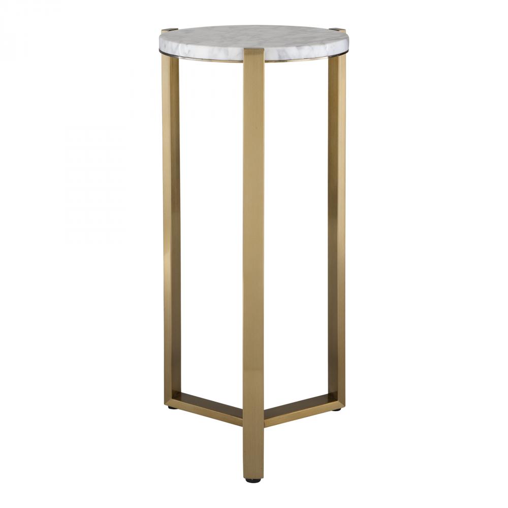 Three Sturdy Antique Brass Finished Legs Fused With A Carrara Marble Top Combine To Create Stability And Elegance In The Pietra Drink Table.