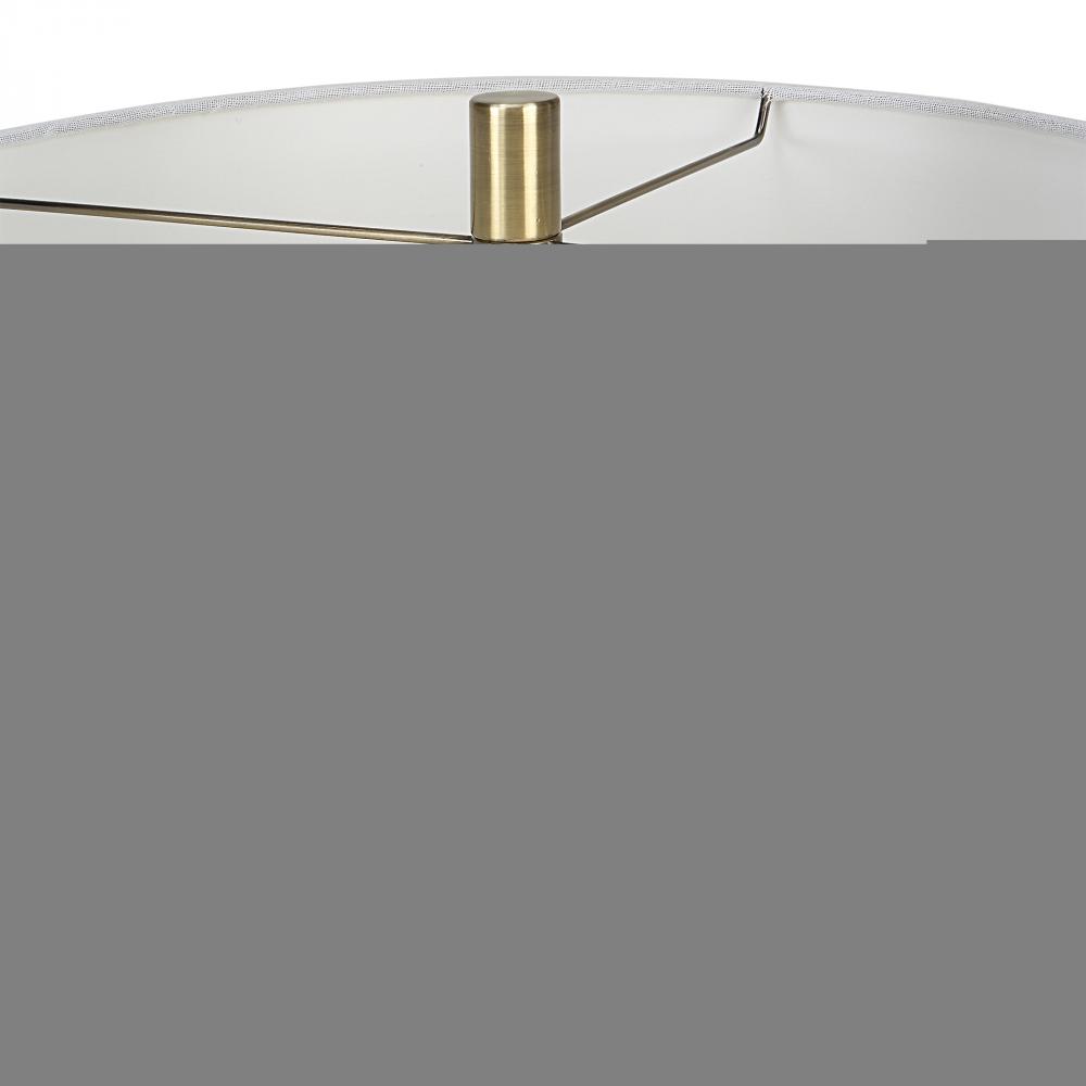 Natural Clay, Taupe, White, and Charcoal Tones Work Together to Create A Unique Artisan-crafted Look for This Table Lamp. The Ceramic Base is Accented By Antique Brass Finished Details. The Hardback Drum Shade is Covered in A White Linen Fabric. Glaze Colors and Designs May Vary Slightly Adding to The Authenticity and Character of The Piece.