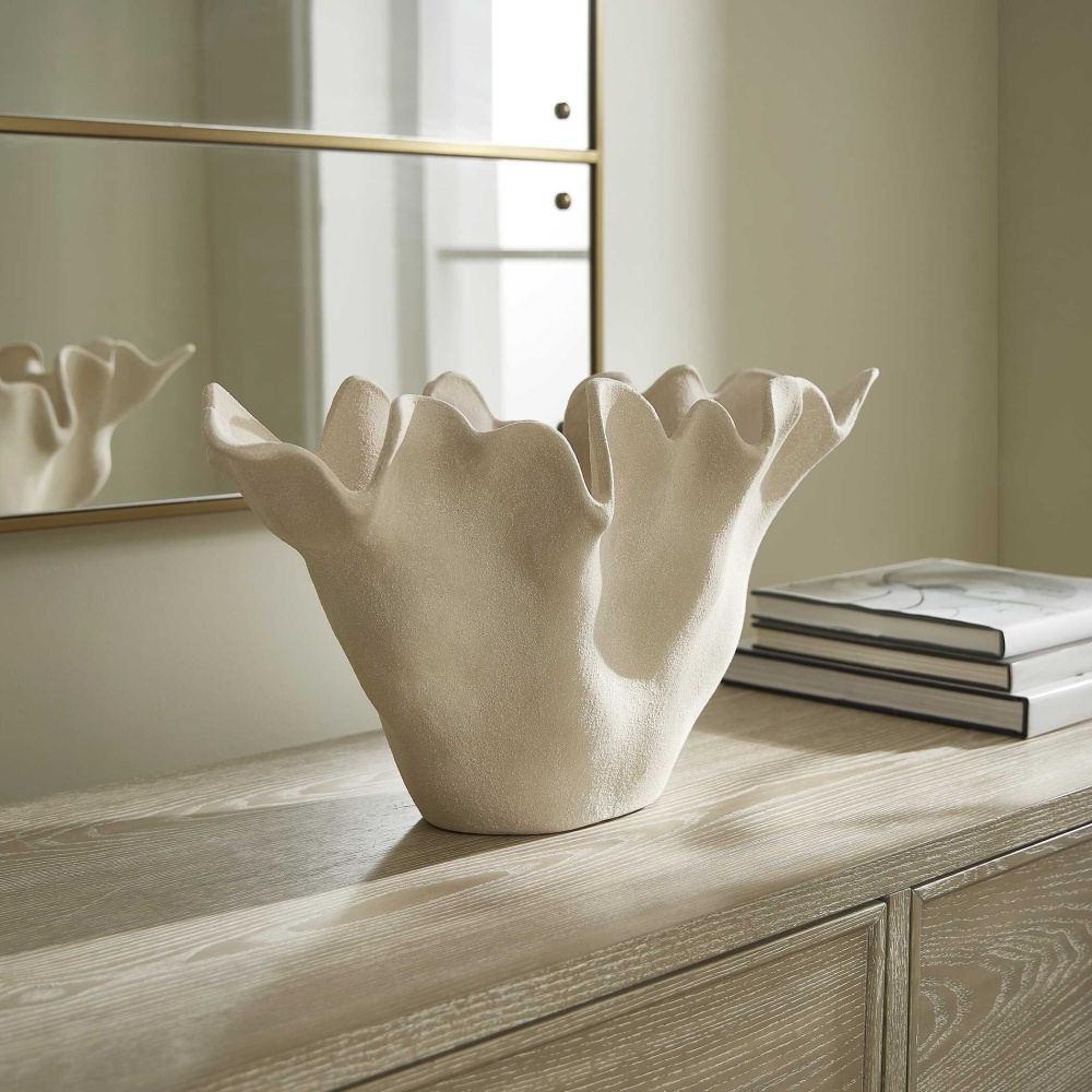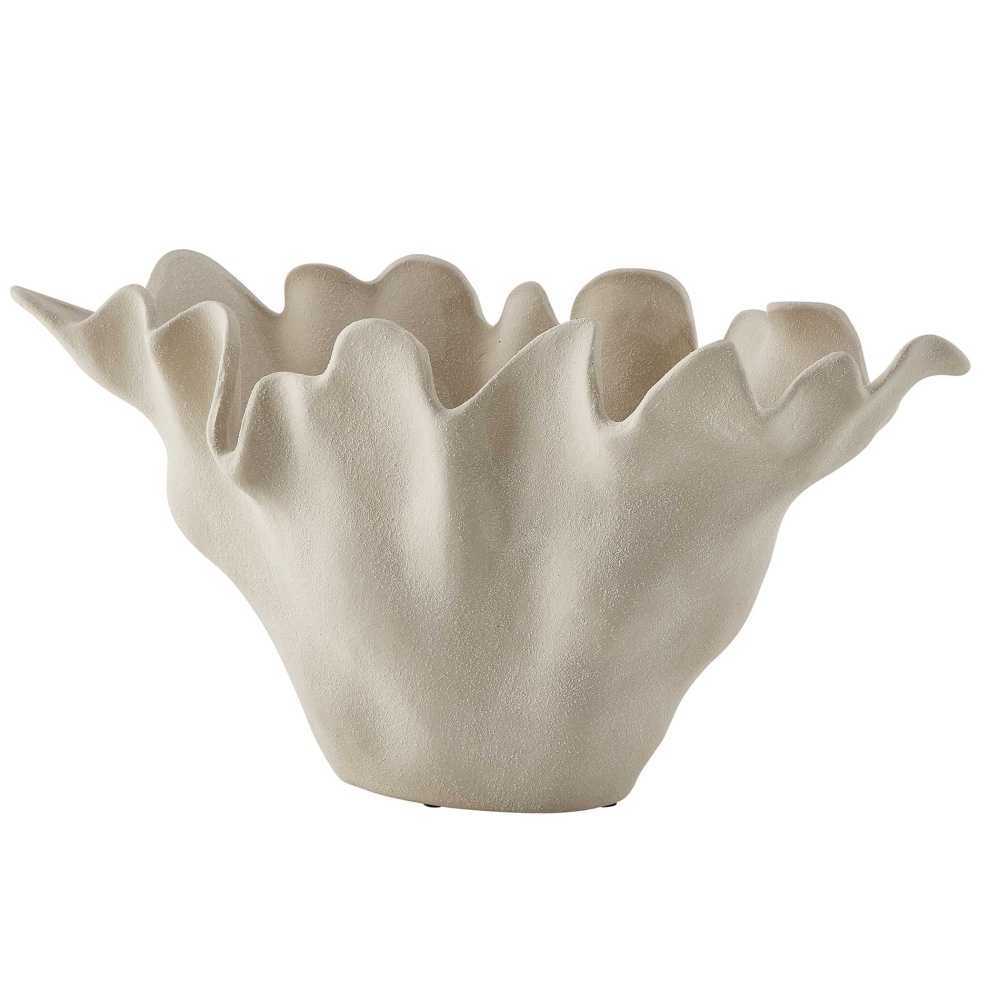 Inspired By The Beauty Of Ocean Corals, This Sculptural Sand-textured Ceramic Bowl Brings An Organic, Artistic Touch To Any Space. Its Fluid, Ruffled Edges And Natural Finish Create A Statement Piece That Complements Modern, Coastal, And Minimalist Settings. Safe For Outdoor Use, But Protection From Freezing Temperatures Is Recommended.
