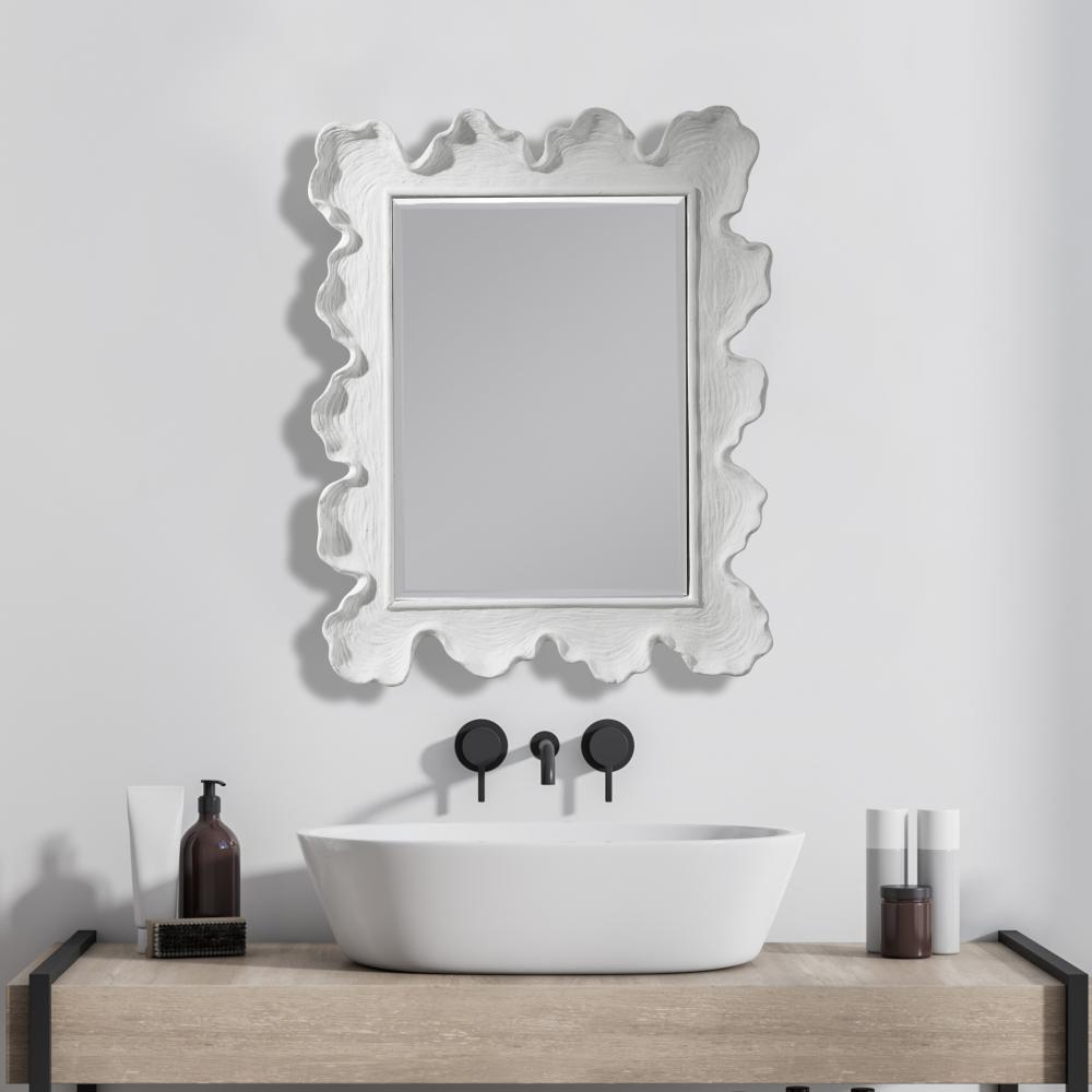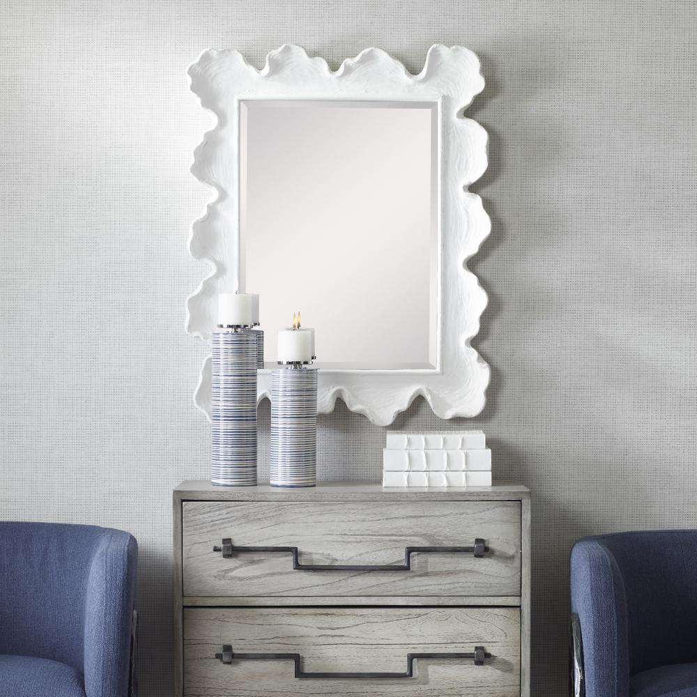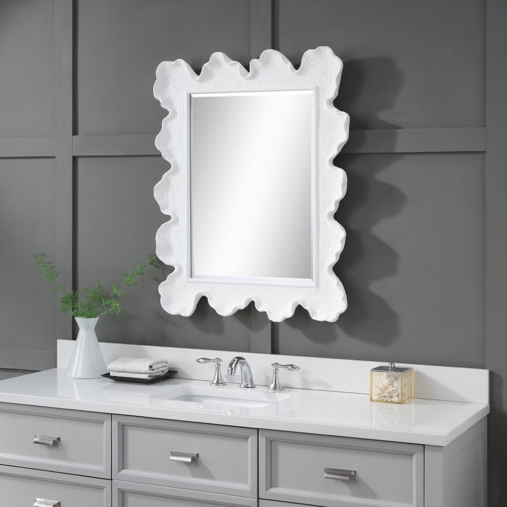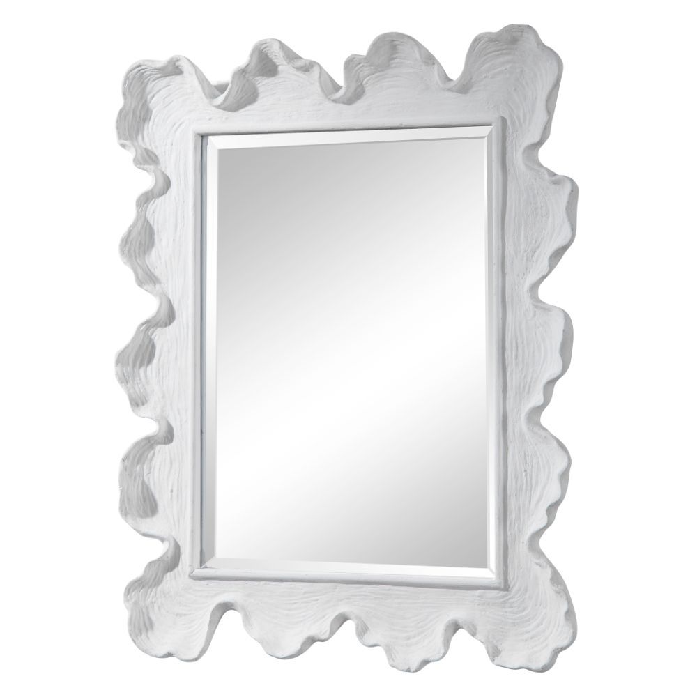 Reminiscent of White Coral, This Mirror Showcases A Contemporary Coastal Design. The Organic Shaped Frame is Finished in Matte White with Noticeable Waves and Texture. May Be Hung Horizontal or Vertical.
