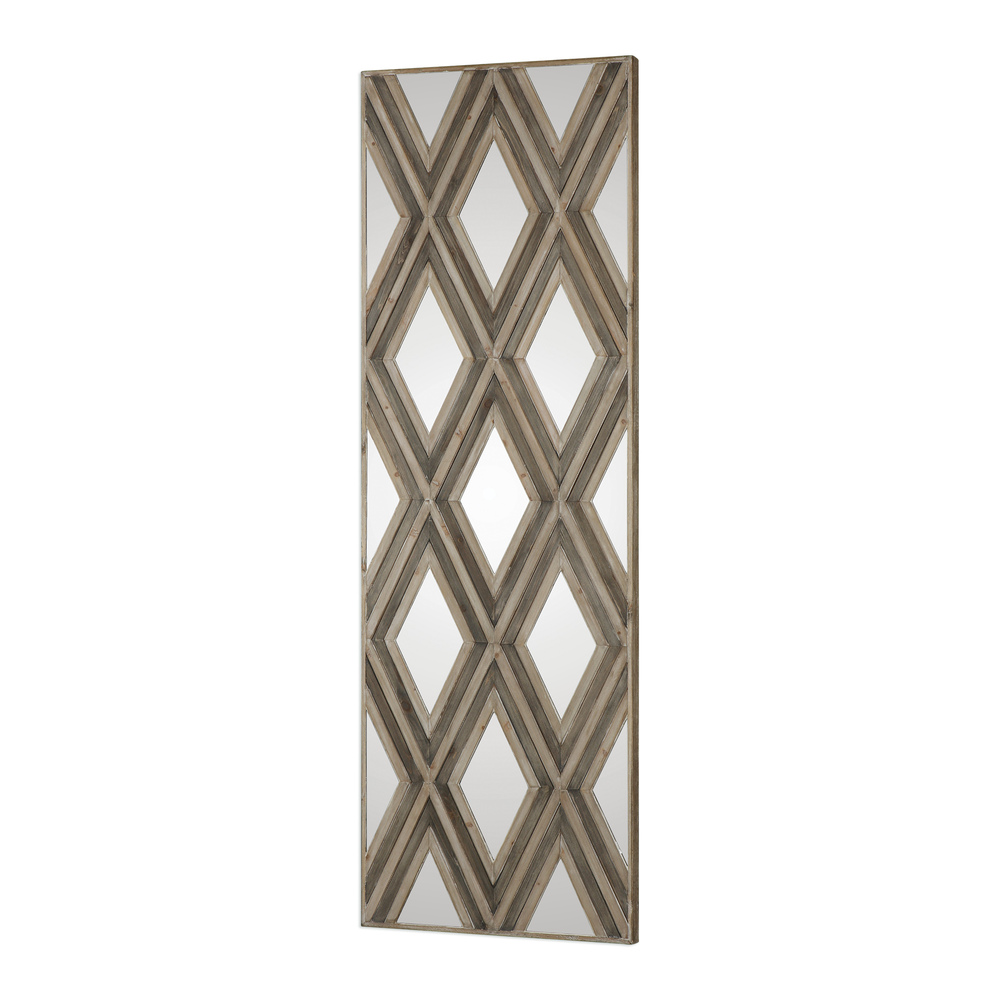 An Updated Blend of Casual and Contemporary with Mirrored Accents, Layered with Fir Veneers in A Geometric Argyle Pattern, Finished in Ivory and Chestnut Gray. May Be Hung Horizontal or Vertical.