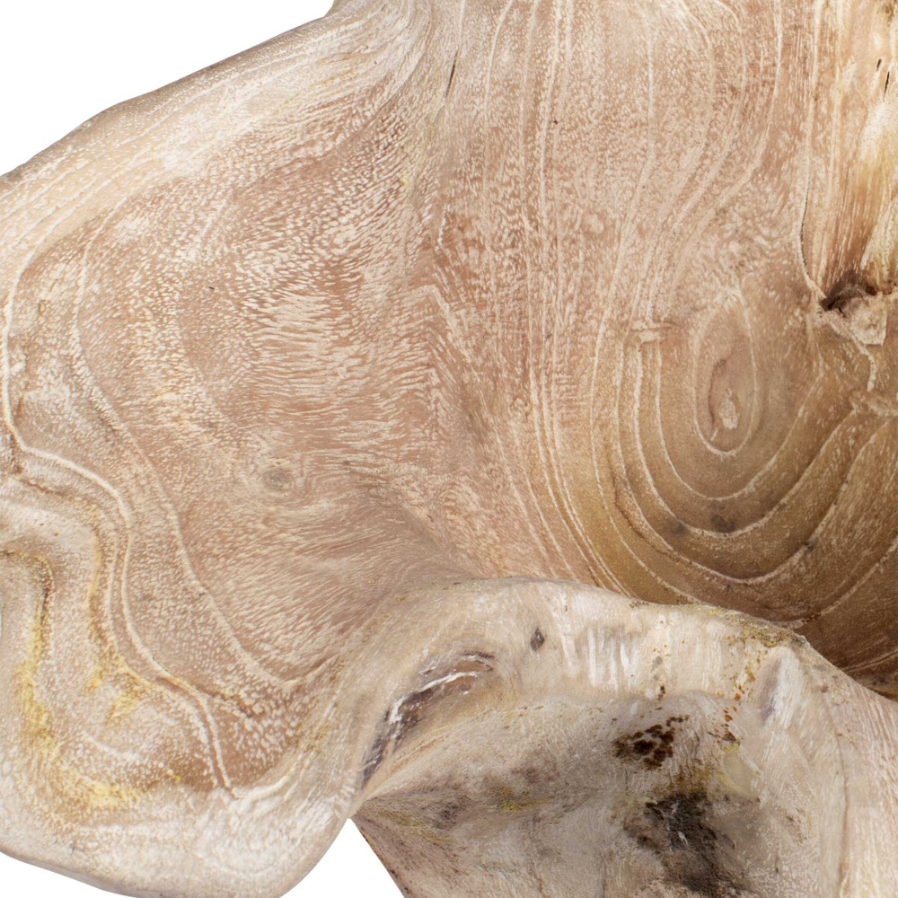 Crafted From White-washed Teak Wood, This Stunning Bowl Showcases Organic Beauty With Its Flowing Sculptural Form. A Perfect Blend Of Art And Function, It Adds Rustic Elegance To Any Space While Serving As A Unique Centerpiece Or Decorative Accent. Because Each Is Individually Handcrafted, Natural Variation Will Occur From Piece To Piece. Safe For Outdoor Use.