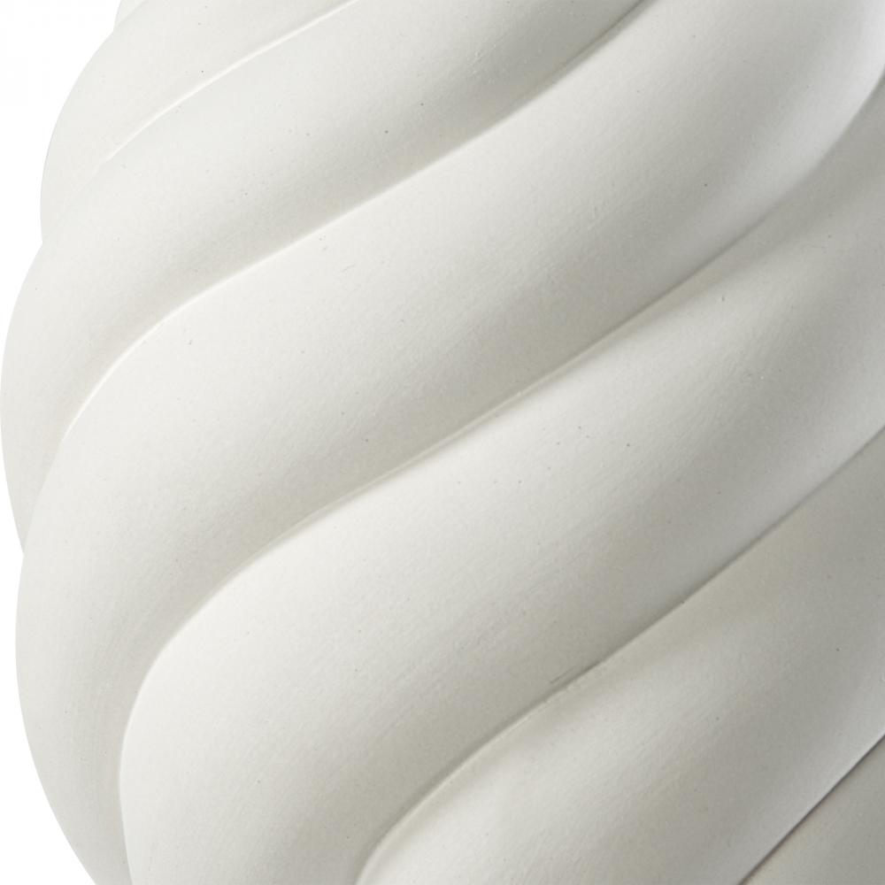 This Ceramic Table Lamp Features A 3-dimensional Twisted Swirl Pattern Finished in A Textured Chalk White Glaze Accented with Polished Nickel Details. The Tapered Round Shade is Covered in A Crisp White Linen Fabric.