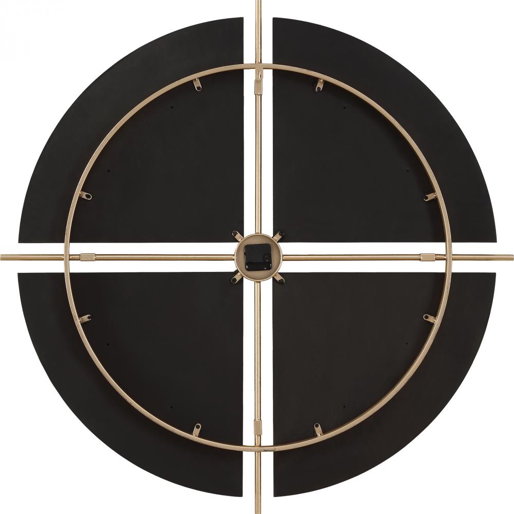 This Unique Clock Is A Harmonious Blend Of Form And Function, Divided Into Four Seamlessly Pieced Sections, Each Graced With A Luxurious Walnut Veneer. The Intersecting Iron Rods Add A Touch Of Sophistication, Finished In A Radiant Metallic Gold. Quartz Movement Ensures Accurate Timekeeping. Requires One "AA" Battery.