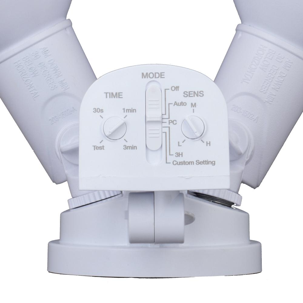 This 2-light outdoor motion sensor security light provides low-level approximately 30% ambient lighting throughout the night and bright 100% high level when motion is detected. The light heads and sensor are fully adjustable to keep your home’s exterior brighter at dusk, dimmer at night, and instantly bright when motion is detected. Customize your lighting options with 5 modes of operation plus adjustable motion sensor sensitivity. Suitable for wall or eave mounting with a wide detection area of 180 degrees and 70 feet. This Dualux security flood light expands the functionality, safety, and security of your home’s outdoor spaces with bright, reliable light when and where it is needed most.