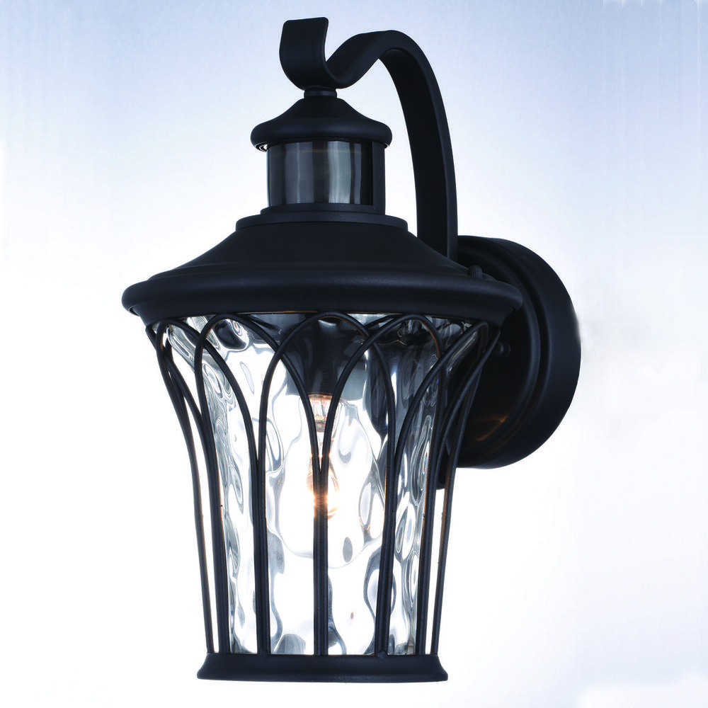 The trendy Abigail outdoor light will add a touch of class to the exterior of your home. With a textured black finish and unique clear water glass, this traditional and timeless piece provides a great mix of style and functionality. Dualux patented dual-level security lighting is outdoor lighting made smarter—brighter light at dusk, dimmer at night, brightening instantly when it detects motion. Designed to reliably and effortlessly enhance your home’s beauty, security and efficiency from dusk to dawn with its built in motion sensor and photocell. This fixture works with any dimmable incandescent or halogen bulb and many dimmable LED bulb models.